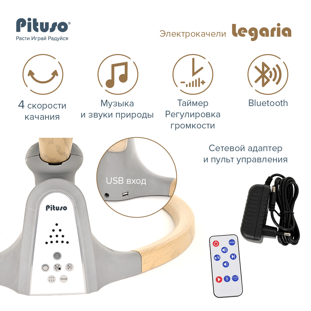 Электрокачели PITUSO LEGARIA (Питусо Легария) - лучший помощник мам и пап, объединяющий в себе сразу несколько функций.