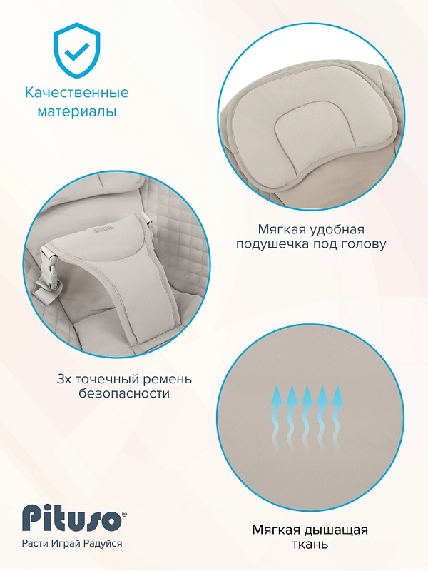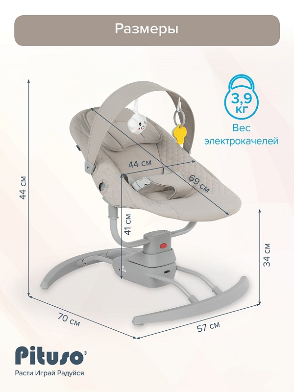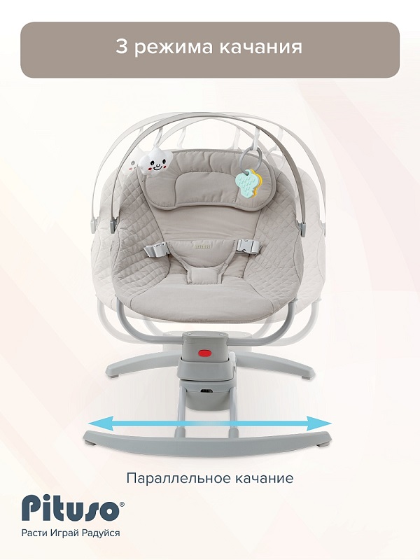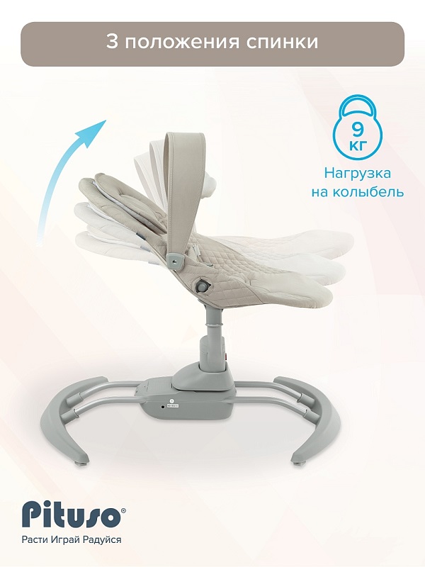 Электрокачели PITUSO RIMA (питусо рима) - это удобное решение для спокойного времяпровождения вашего малыша. Качели представляют собой шезлонг и люльку в одном, обеспечивая комфортное укачивание для самых маленьких. Модель оснащена функцией музыкального сопровождения и различными режимами работы (3 режима). Детская электро-колыбель подходит для малышей до 9 кг, а её современный дизайн гармонично впишется в любой интерьер. Легко разбирается, в разобранном виде компактна, удобна для хранения и переноски.