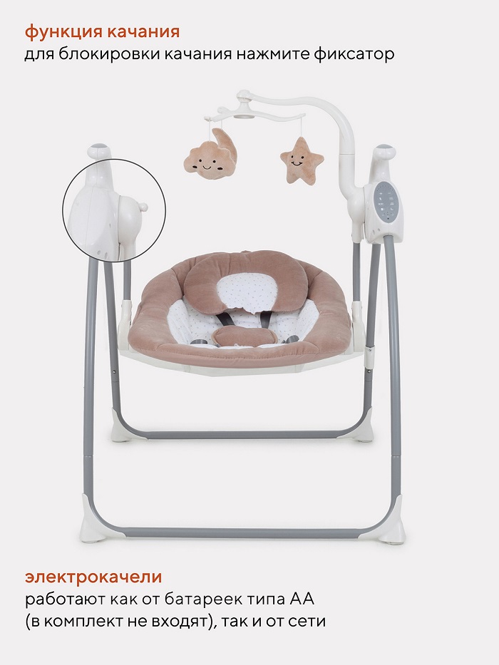 - благодаря удобным ручкам электрокачели можно легко переносить с места на место, даже если там сидит малыш