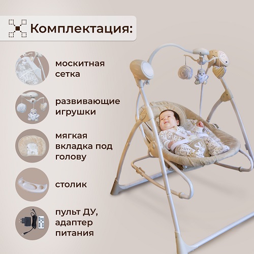 В комплекте: подвеска с игрушками, мягкий вкладыш, подголовник, пульт.