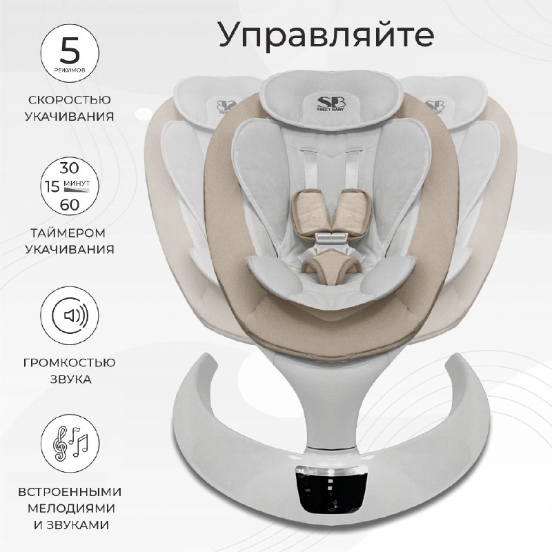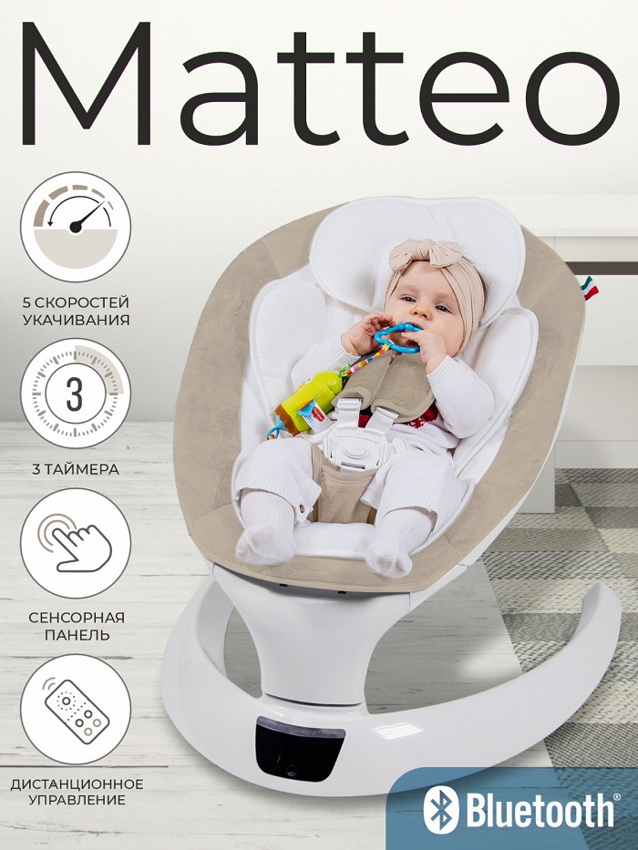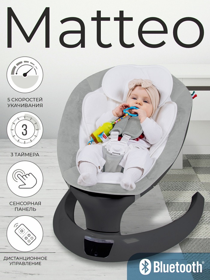 Электрокачели Sweet Baby Matteo (Свит беби маттео) - детское устройство, которое позволит ребенку удобно и комфортно провести время без родительских рук. Matteo это детские электронные шезлонг-качали, которые рассчитаны для ребенка с рождения до 9 кг. Очень комфортное ложе имеет несколько положений по высоте, ремешки для безопасности и специальный мягкий эргономический вкладыш. Качели достаточно компактные и не займут много места. Устойчивое основание обеспечит ребенку комфорт и безопасность. Качели имеют плавное укачивание из стороны в сторону, как в колыбельки.
