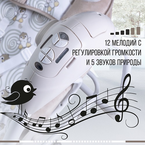 - 12 мелодий с регулировкой громкости и 5 звуков природы