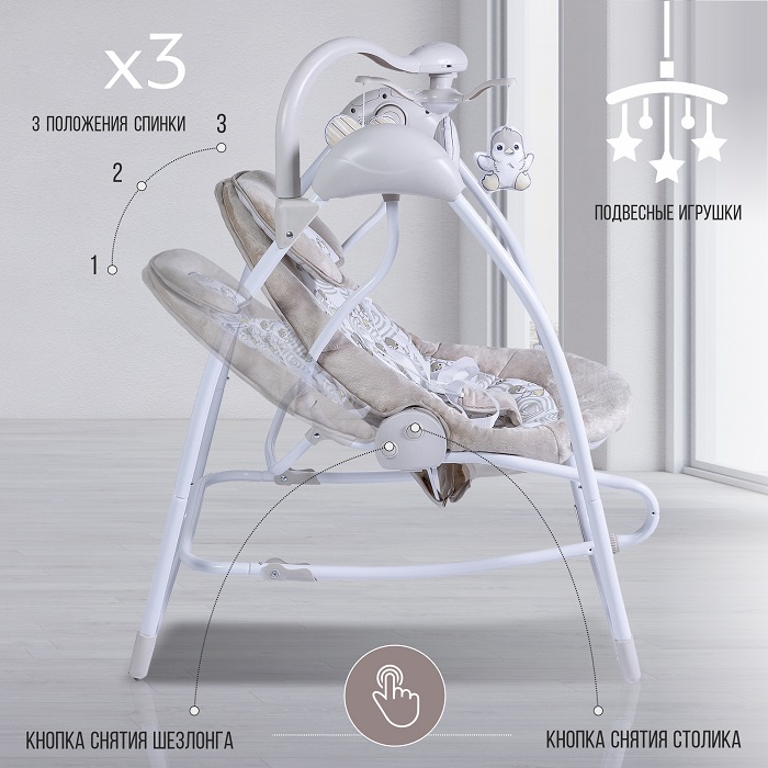 Кроме того, электрокачели Sweet Baby Pure Pinguino имеют уникальный дизайн с оригинальным принтом, который придется по вкусу как родителям, так и малышам. Такое устройство станет не только неотъемлемым элементом детской комнаты, но и прекрасным подарком для новорожденного. Электрокачели имеют съемный чехол из моющегося материала, который обеспечивает простоту ухода. И при желании качели легко превратятся в шезлонг, что дает возможность брать его с собой или удобно перемещать по дому. В общем, электрокачели Sweet Baby Pure Pinguino – это идеальный выбор для тех, кто ищет безопасный, функциональный и удобный уход за ребенком. Он создан со заботой о вашем малыше и облегчит вашу жизнь!