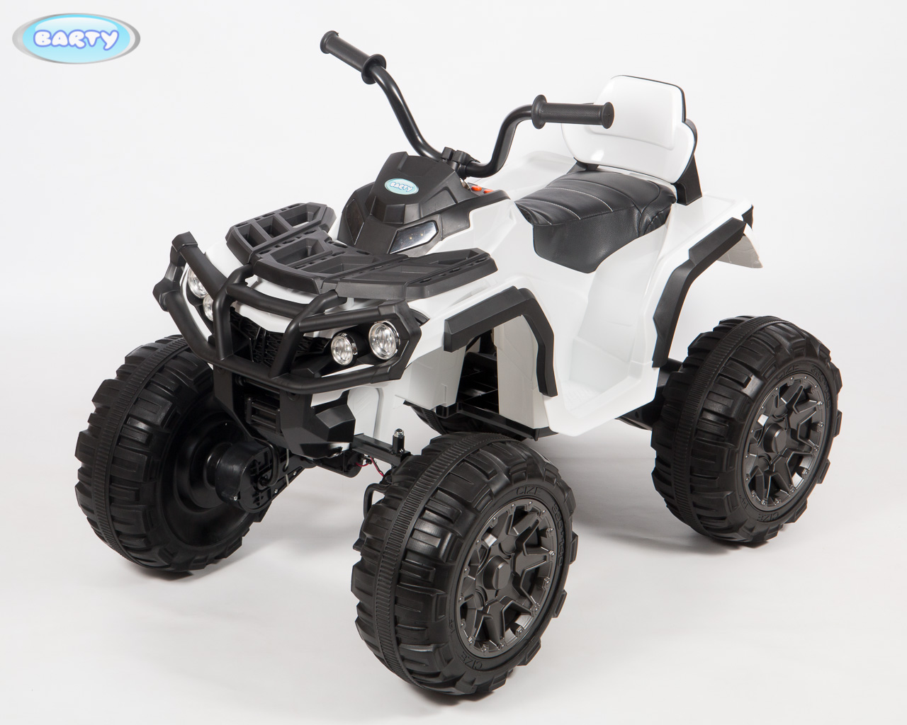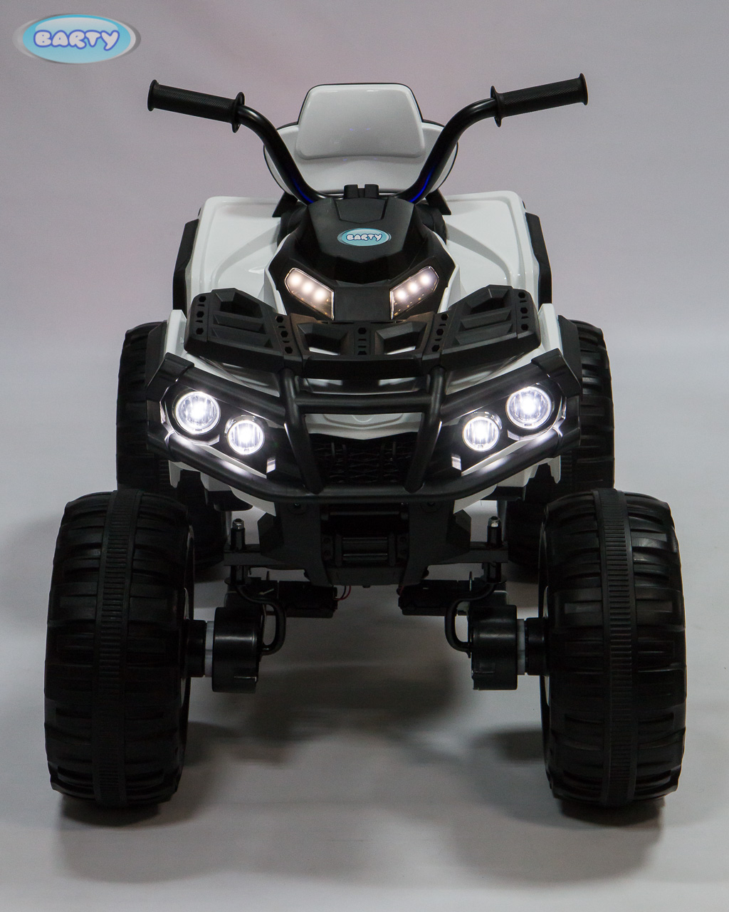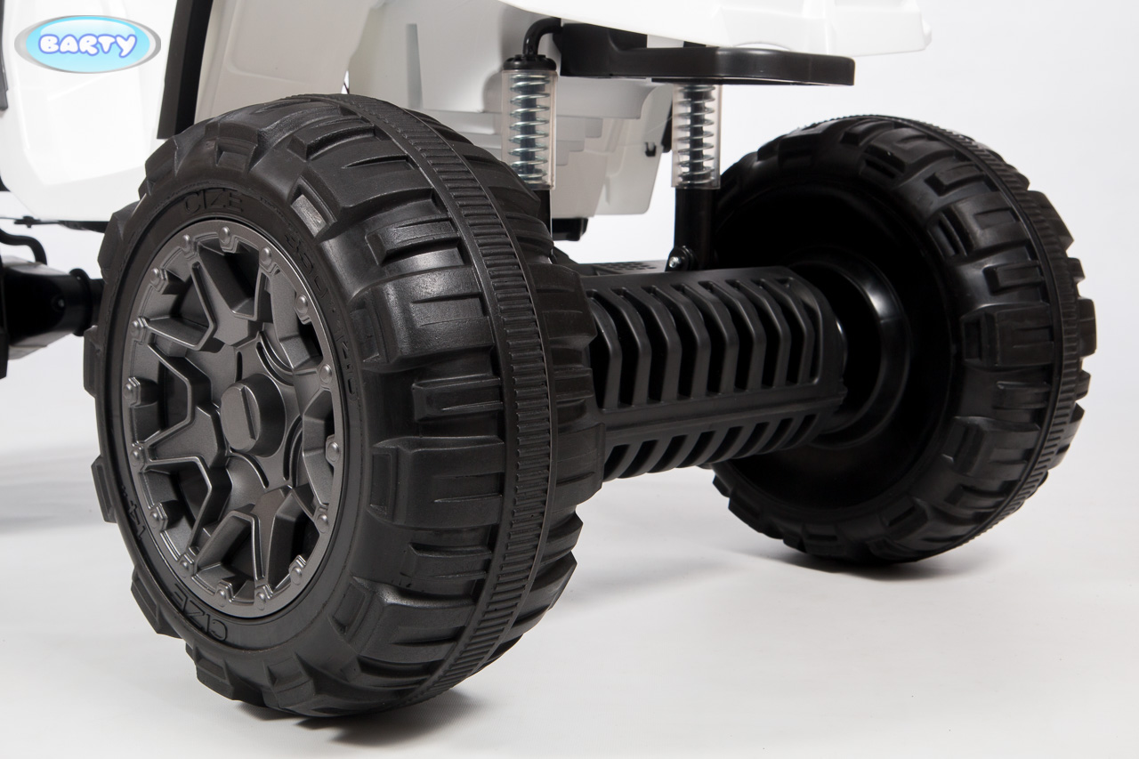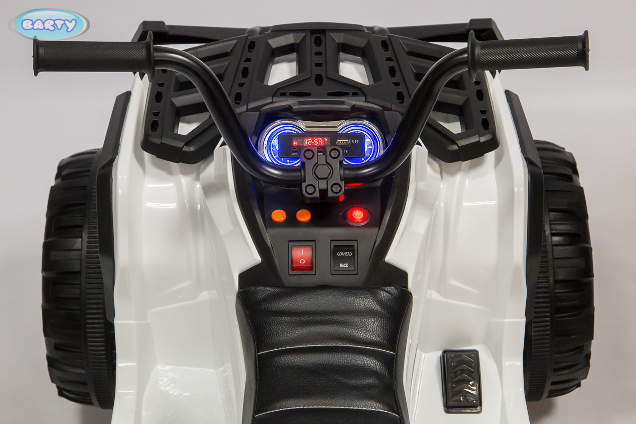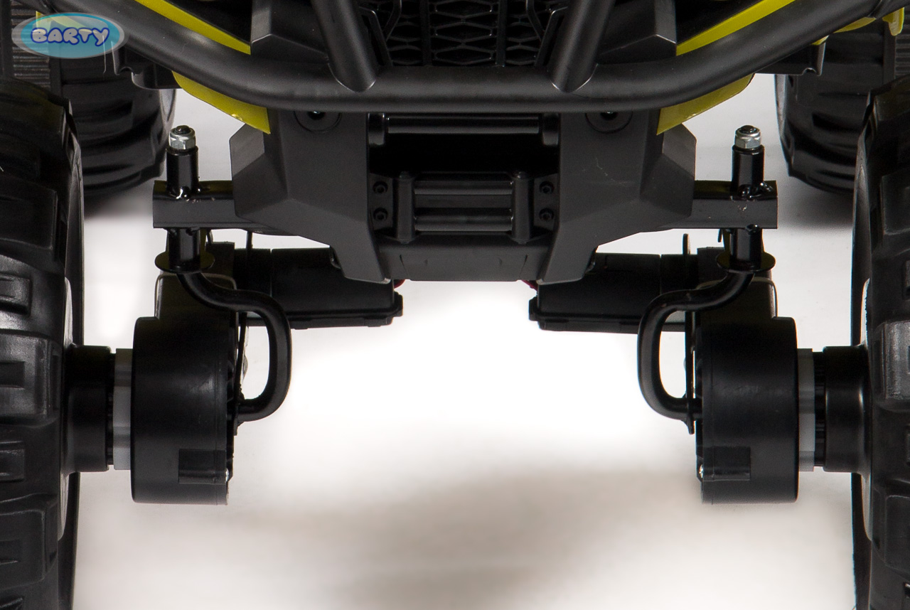 Детский квадроцикл BARTY Grizzly Т001МР 2020 (барти гризли) - мощный, яркий и невероятно крутой квадроцикл для ребенка от 3 лет. Идеальный транспорт для прогулки по любой местности. Каучуковые колеса оснащены подшипниками и агрессивными протекторами. Задняя подвеска на амортизаторах. 2 двигателя по 45W.