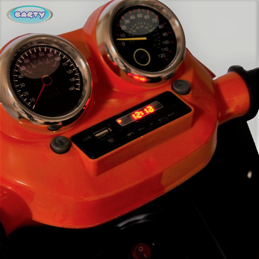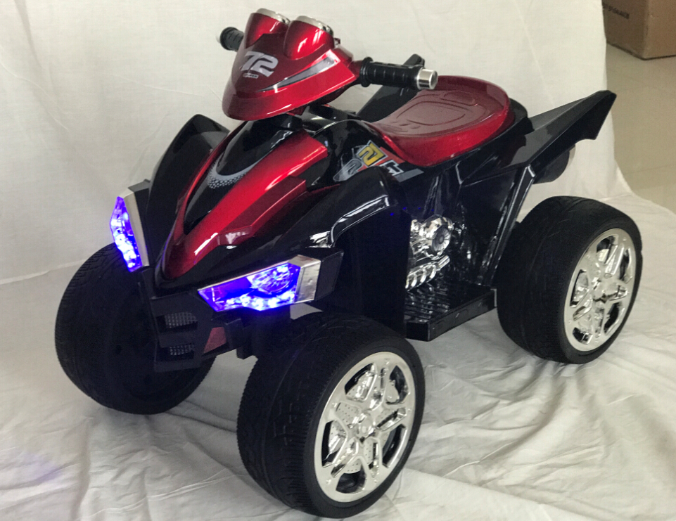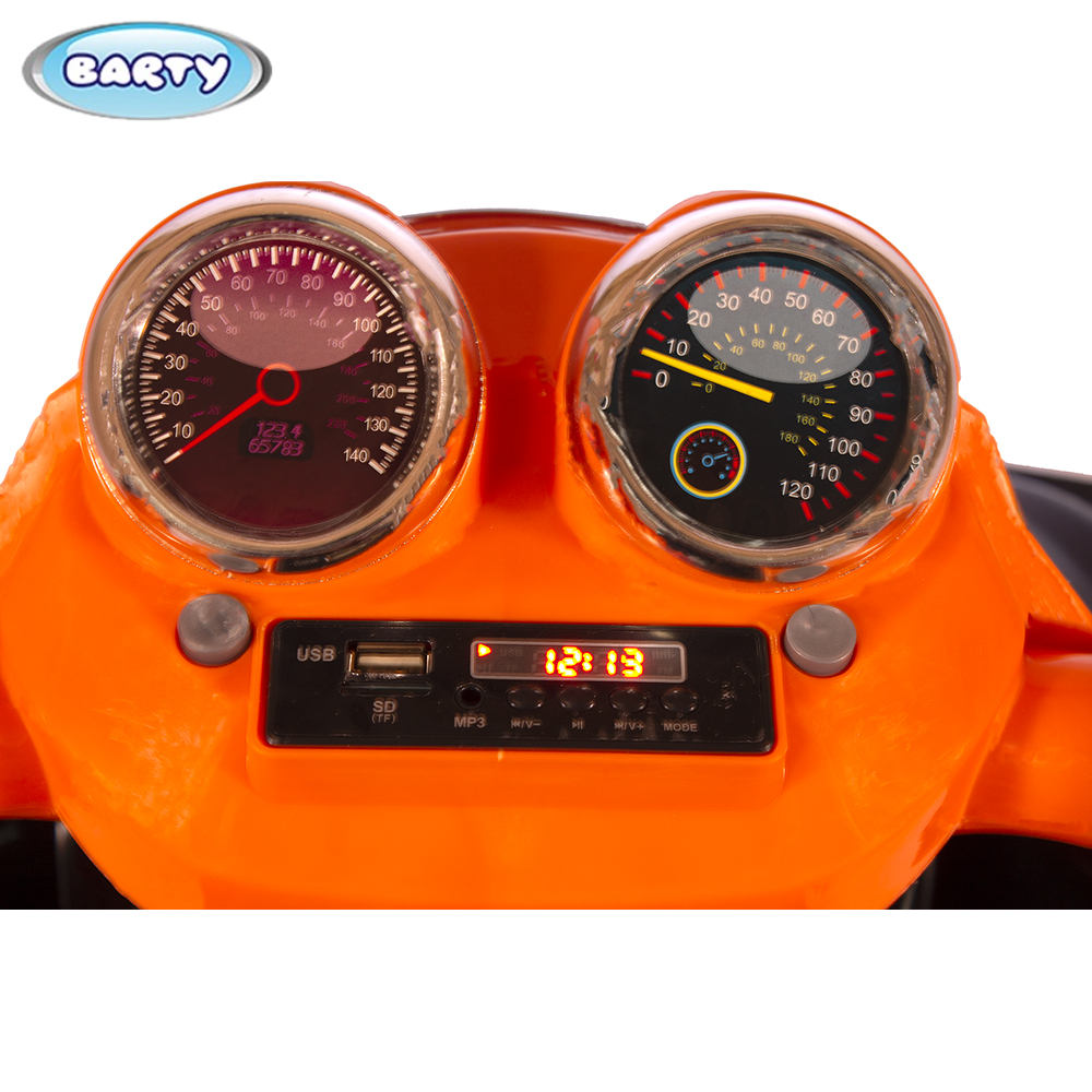 На панели приборов есть встроенная аудио-магнитола. Благодаря разъемам под USB, малыш сможет прослушать любимую музыку с помощью флеш-карты. В темное время суток можно осветить путь яркими диодными фарами. Также стоит отметить глянцевую покраску электроквадроцикла, которая не подвержена воздействию солнечных лучей.