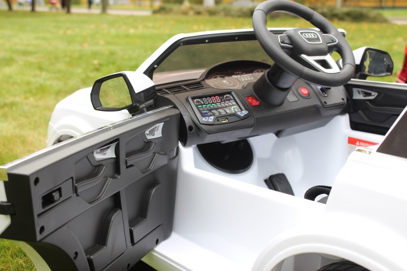 Электромобиль Barty Audi Q7 (HL159) (Барти Ауди кью 7 ) - точная лицензионная мини-копия взрослого внедорожника, перенял в себя основные достоинства роскошного прототипа: стиль и надежность. Кузов в точности повторяет дизайн взрослого авто, решетка радиатора и руль оснащены фирменными эмблемами Ауди, салон электромобиля максимально реалистичен, двери открываются, на них есть фиксаторы предотвращающие случайное открывание, комфортное водительское сиденье из кожи с ремнями безопасности,настоящие зеркала помогут контролировать «дорожную обстановку».