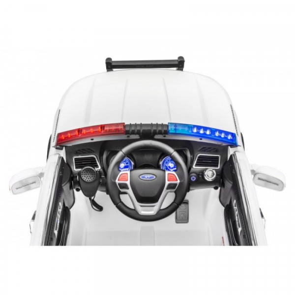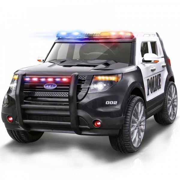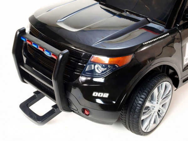 Электромобиль BARTY Ford ПОЛИЦИЯ Т111МР (барти форд) - полицейский джип на электроприводе для ребенка от 3 до 8 лет. У машины работает полицейская мигалка и рация-громкоговоритель внутри машины. Представляете, как интересно будет ребенку играть с такой реалистичной машиной. При этом в машине открываются двери, а сидения из эко кожи. Для безопасности ребенка предусмотрены ремни безопасности. Так же для ребенка предусмотрен музыкальный руль, светодиодные огни фар и задних сигналов, световые эффекты на решетке радиатора и лобовом стекле. Машина может управляться с пульта, что позволит катать ребенка, пока он сам не разберется с управлением. Большие колеса с амортизацией и мощным аккумулятором позволят ездить не только по ровным дорожкам, но и преодолевать небольшие препятствия и ездить по бездорожью. Для удобной транспортировки предусмотрена специальная ручка в задней части машины.