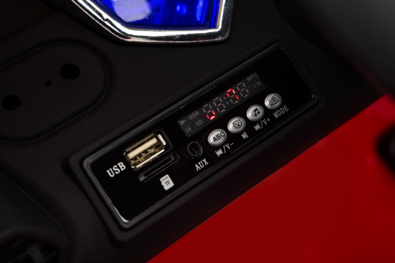 Спорткар максимально стилизован под настоящий: зажигание с ключа, светодиодные и габаритные огни, фары, музыка с флешки или MP3. Мощность машины позволяет ездить до 7 км/час, а большие резиновые колеса с легкостью преодолевают препятствия. Такая машинка будет актуальна в любое время года.