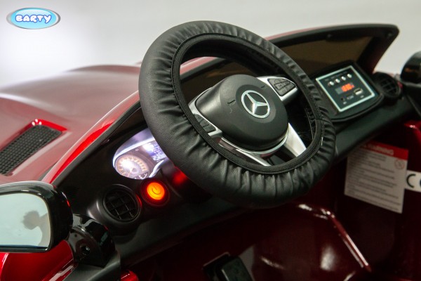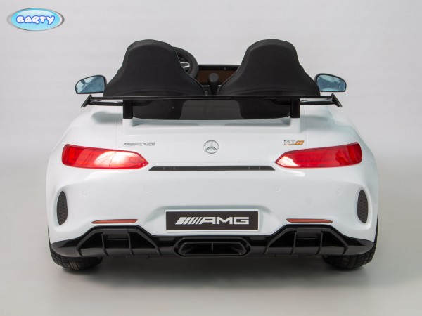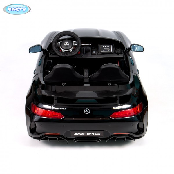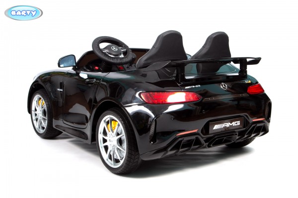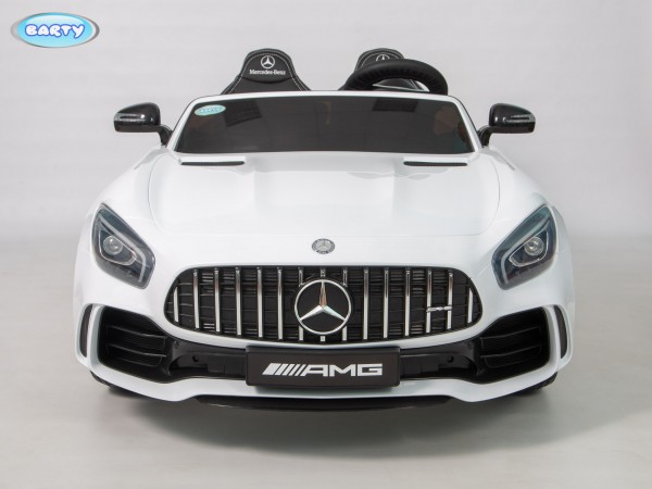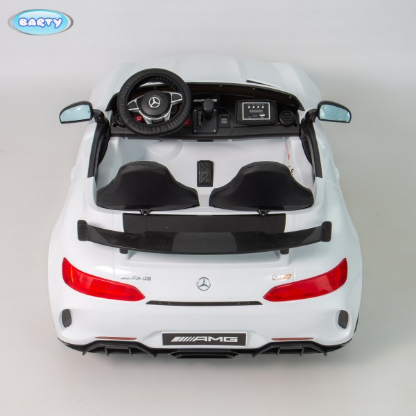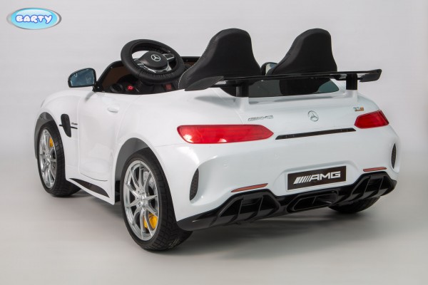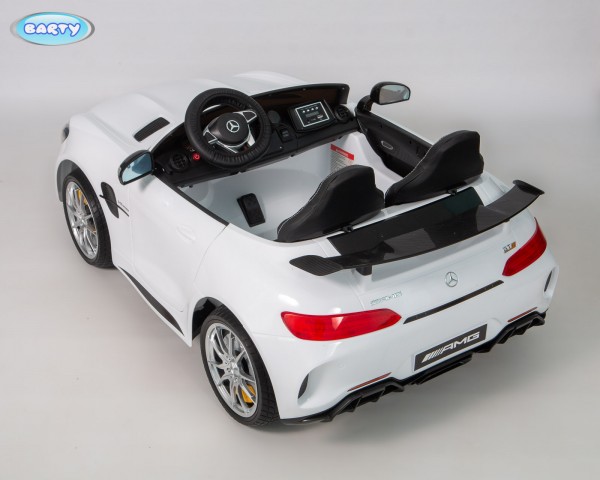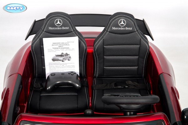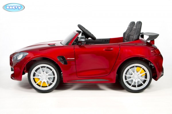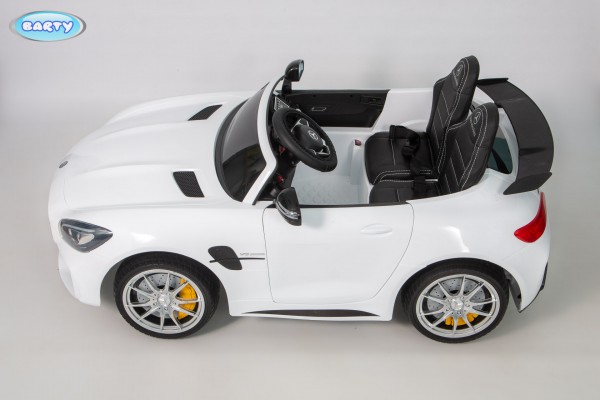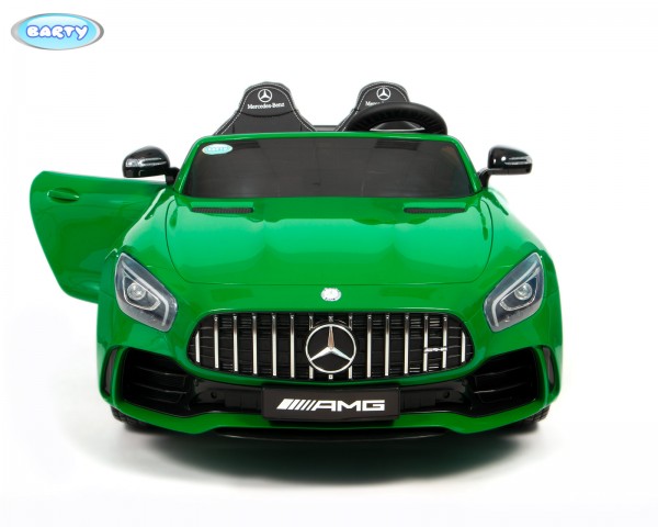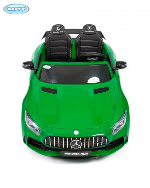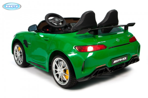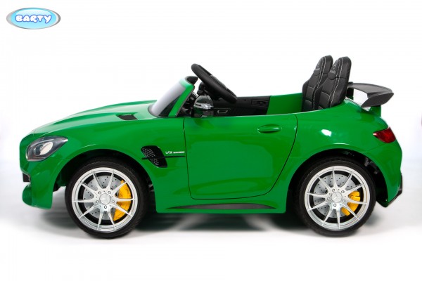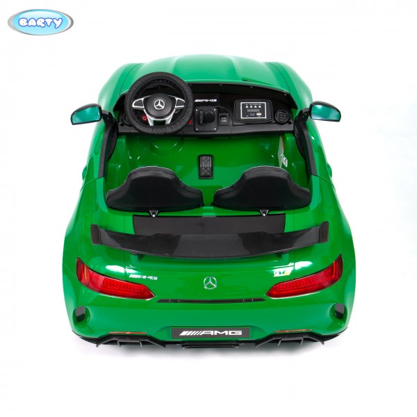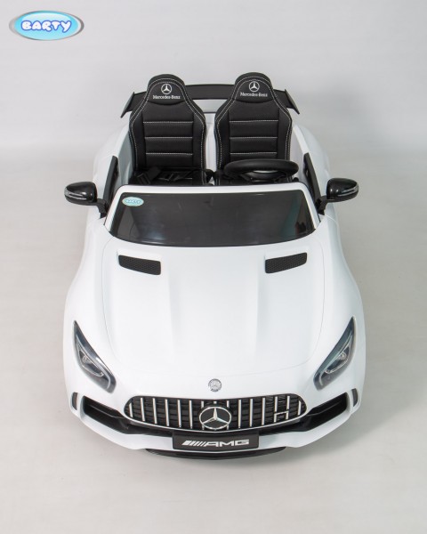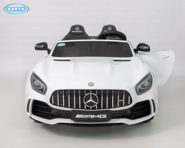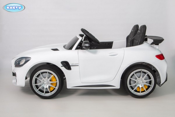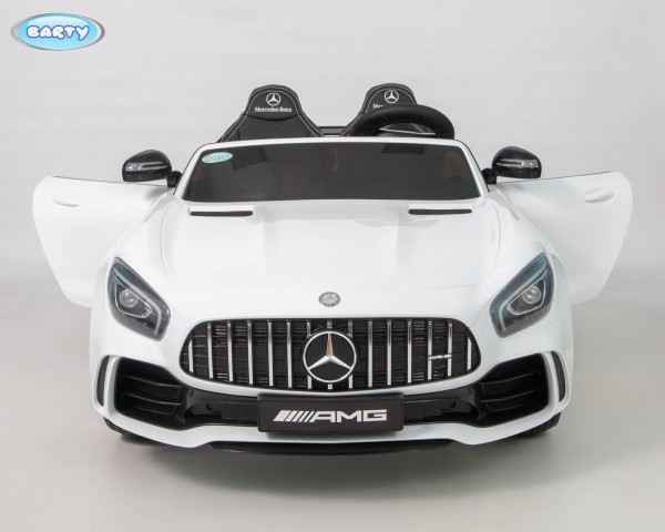 Электромобиль BARTY Mercedes- AMG GT R (барти мерседес амж) - красивая и мощная двухместная машина для ребенка от 3х лет. Такая модель обязательно заинтересует ребенка, так как двери открываются, все фары горят, музыкальный руль и возможность включать любую музыку с помощью радио, mp3 или usb. Кожаные сидения и схожесть с настоящим Mercedes- AMG GT R делают данную машинку прекрасным подарком на любой праздник. Машиной может управлять сам ребенок или родители с пульта управления.