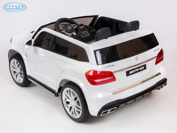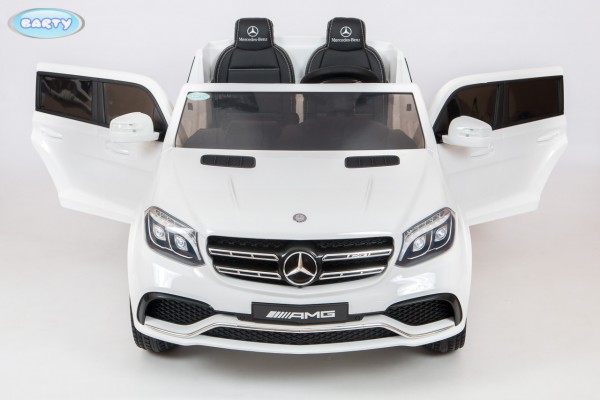 Электромобиль BARTY Mercedes-Benz AMG GLS63 HL228 (Барти мерседес бенз амджи) - двухместный стильный автомобиль на электроприводе для ребенка от года до 8 лет. Реалистичная копия взрослой машины несомненно понравится маленькому водителю. Просторные кожаные сидения и ремни безопасности обеспечат безопасную поездку для одного или двух детей. В машине открывается капот, двери и багажник. Для реалистичности приборная панель подсвечивается, рульс сигналом, светодиодные фары, музыка. Машинка довольна мощная поэтому прекрасно будет ездить по любым дорогам. Упарвляется модель с родительского пульта или самостоятельно ебенком. Есть удобная ручка для переноса.