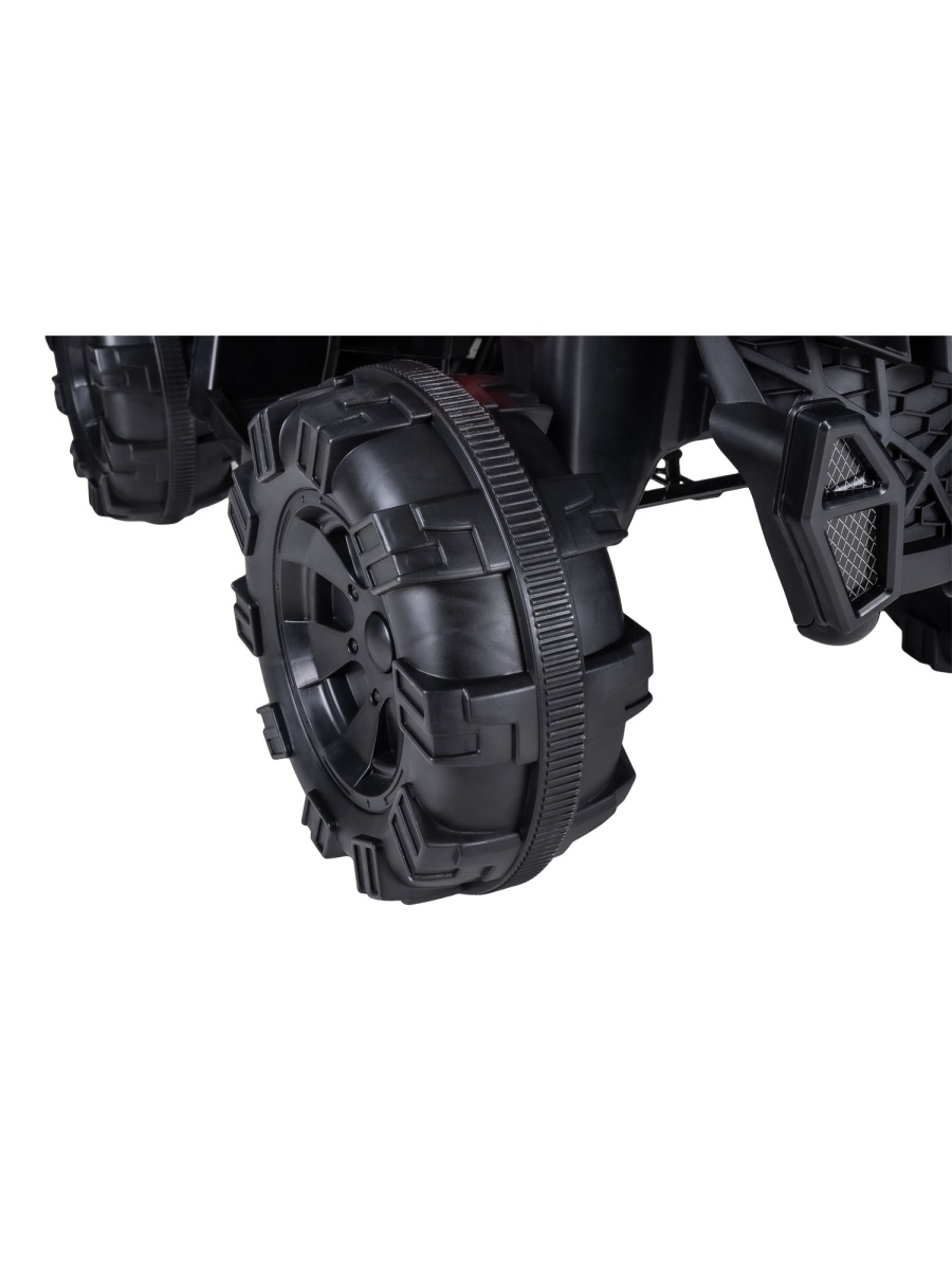 Новый яркий квадроцикл для Вашего малыша! Транспорт приводится в движение нажатием педали. Переключение скорости вперёд/назад с помощью кнопки на панели у руля. Широкое сиденье и не скользкие подножки позволяют комфортно разместиться ребенку на электромобиле.