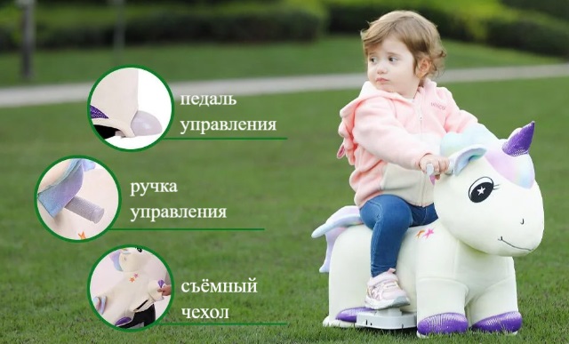 Электромобиль Farfello А2113 Единорог - уникальный детский электромобиль, выполненный в виде большой мягкой игрушки. Электромобиль имеет невероятно симпатичный внешний вид, который не оставит равнодушным любого ребенка. "Игрушка" мягкая на ощупь, плющевая. Для удобства родителей обивка снимается для стирки, поэтому даже после очень увлекательных игр, может даже на свежем воздухе, вы легко сможете привести "игрушку" в первозданный вид. Электромобиль рассчитан для самых маленьких, поэтому в нем удобная посадка, резиновые рукоятки, плавный мягкий ход. Машинка двигается с помощью легкого нажатия на педаль. Так же в машинке предусмотрена музыка, чтобы прогулка проходила еще более интересной.