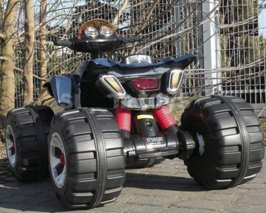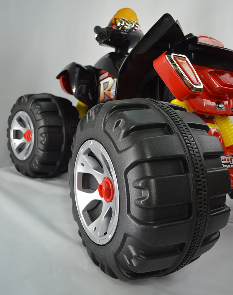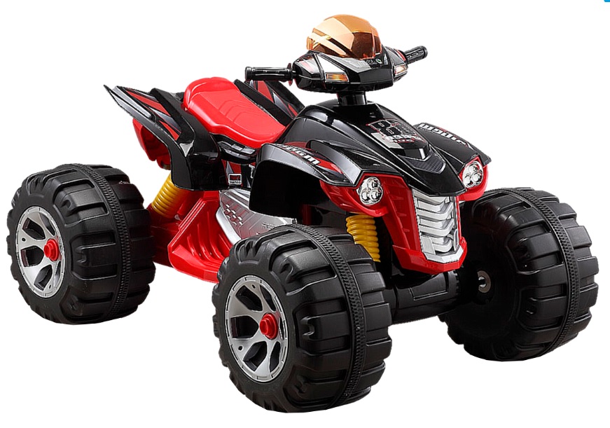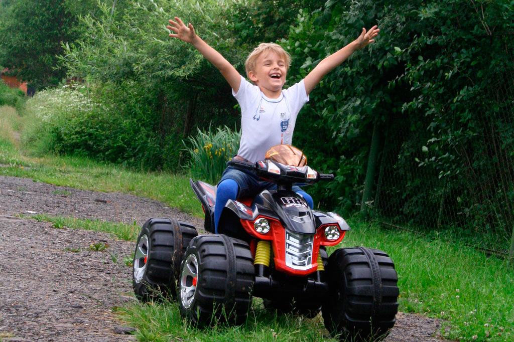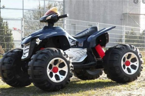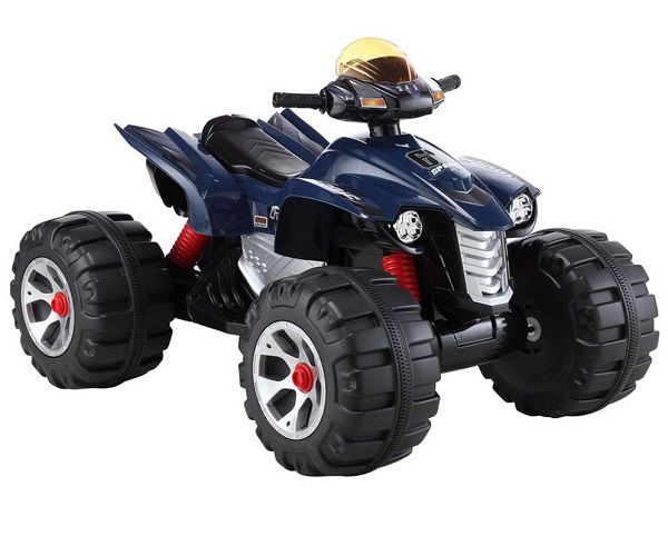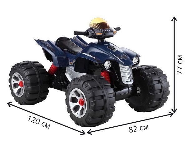 Квадроцикл разгоняется до 6 км/ч, для маневрирования рукоятки руля покрыты прорезиненным материалом с выраженным рельефом, с которых детские ладошки не будут соскальзывать. Емкий аккумулятор на 12V держит заряд 10 часов катания и заряжается при помощи сетевого адаптера, который идет в комплекте.