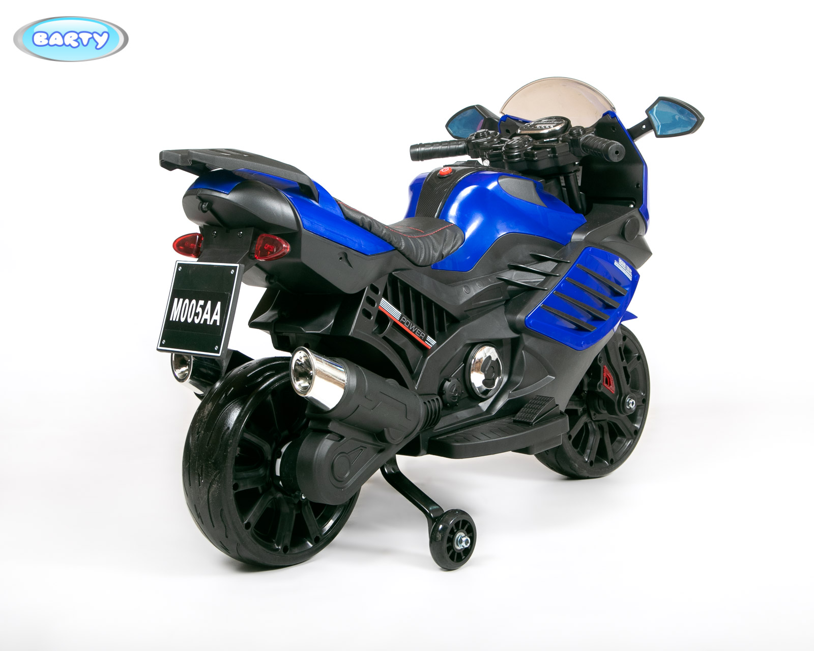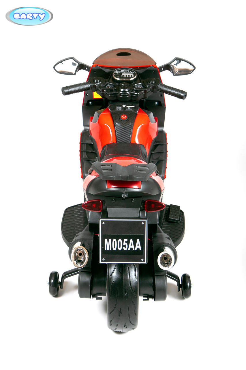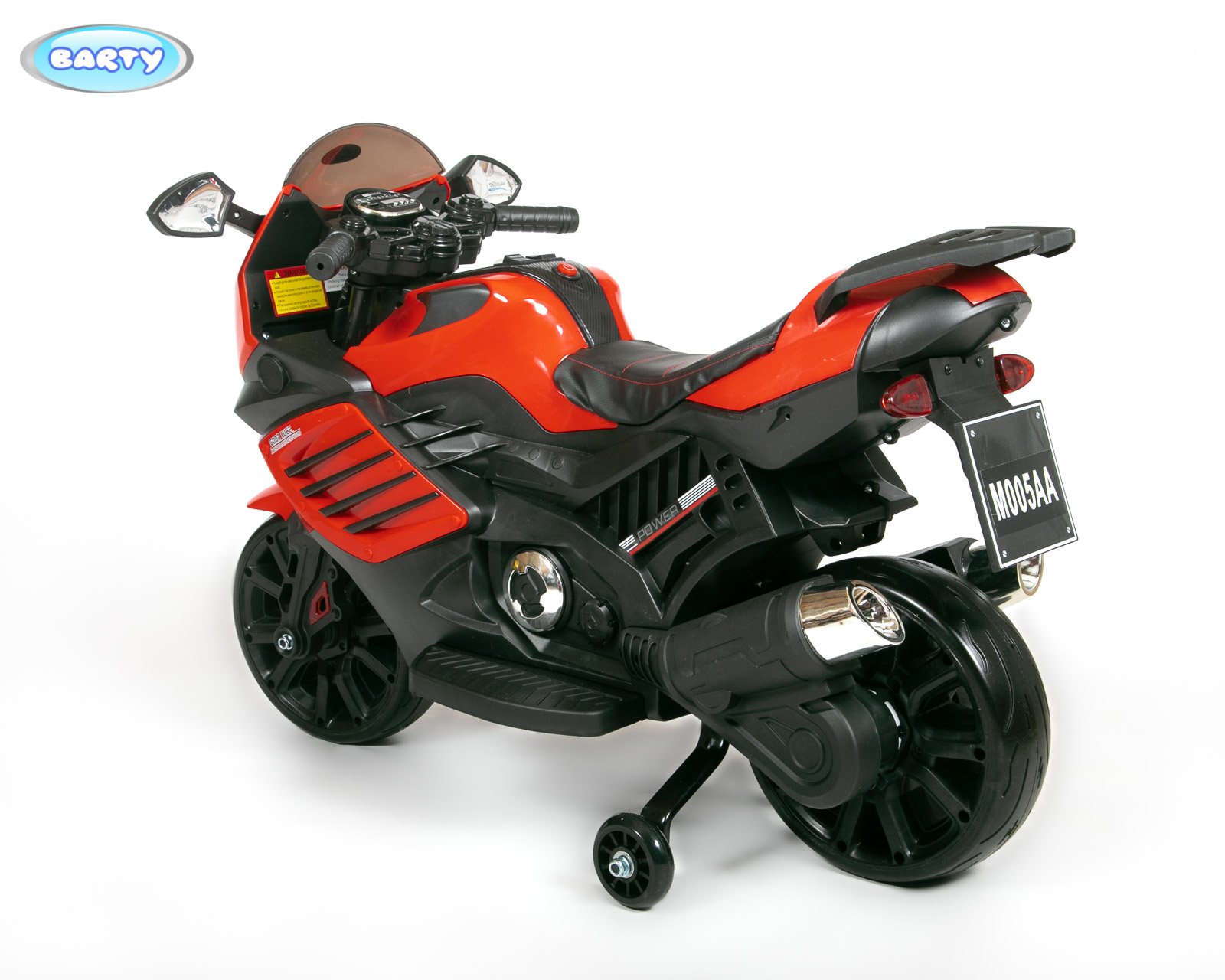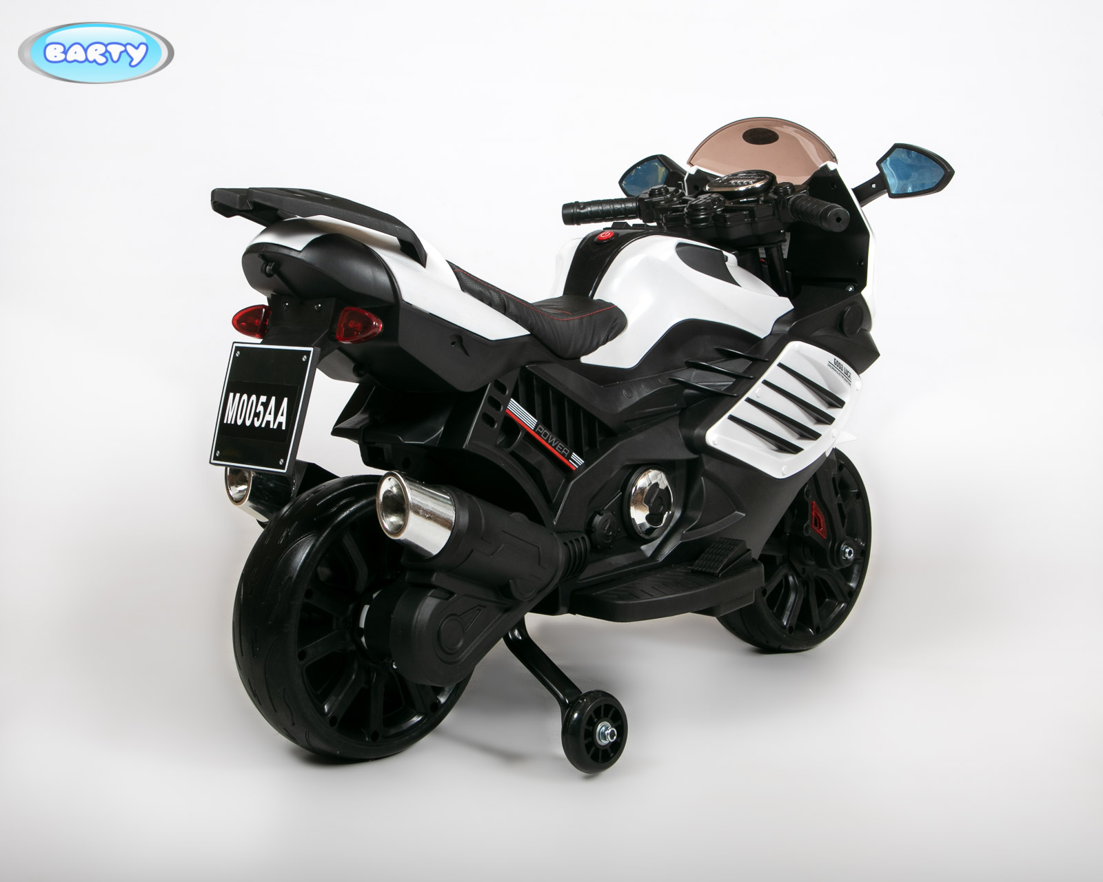 Электромотоцикл BARTY М005АА (Барти) - стильный, мощный мотоцикл для ребенка от 3 до 6 лет. Яркий дизайн, свет фар, звуковые элементы придают ребенку ощущение, что он управляет "взрослым" мотоциклом. Для начинающих гонщиков предусмотрены дополнительные колесики, которые помогут удержать равновесие. Простое управление и понятные кнопки помогут ребенку быстро разобраться, и научится ездить на такой машине. Максимальная скорость данной модели до 4 км в час, а заряда аккумулятора хватит до 120 минут беспрерывного катания. Небольшой вес модели поможет родителям без труда брать данный мотоцикл на прогулку.