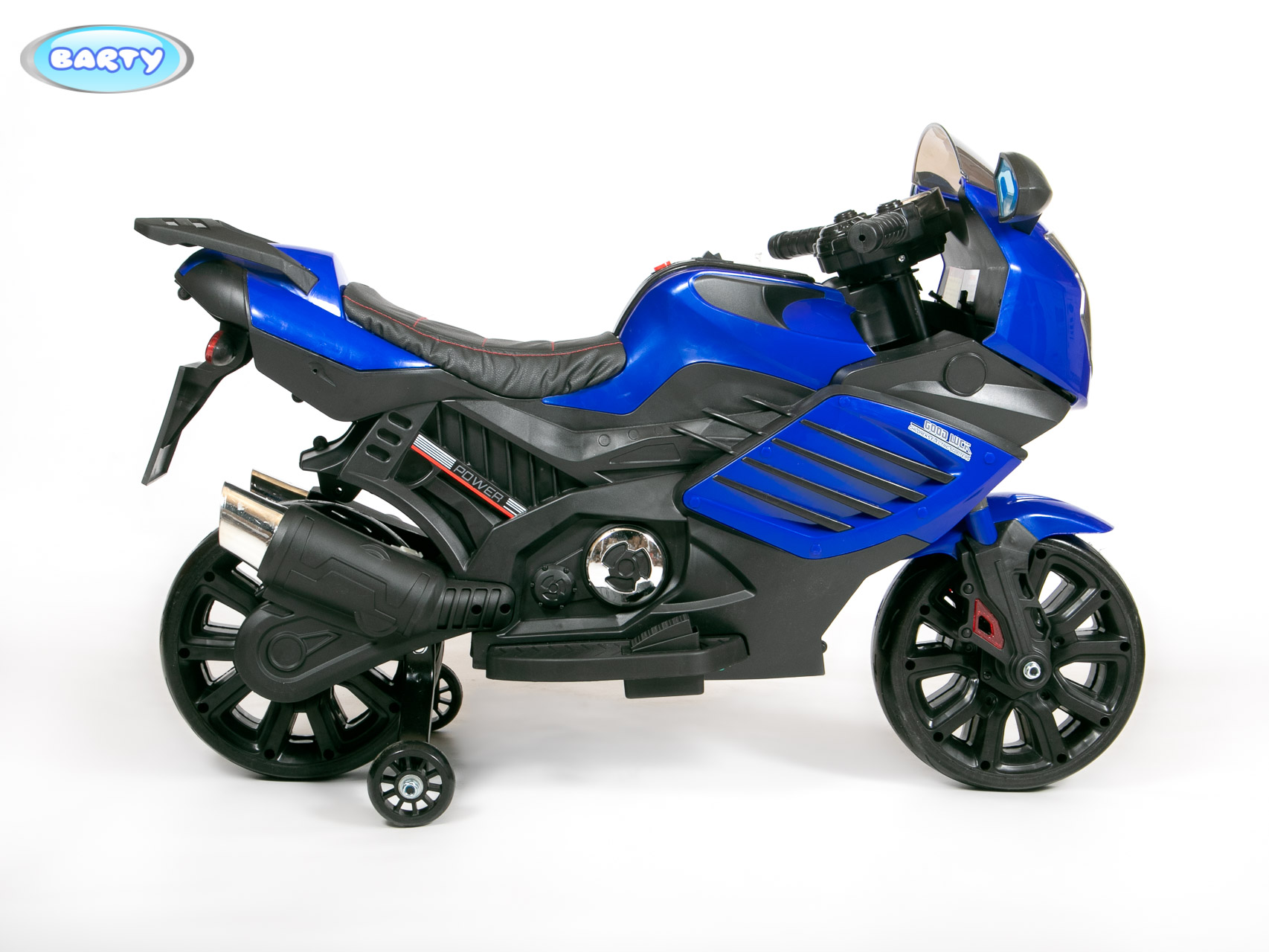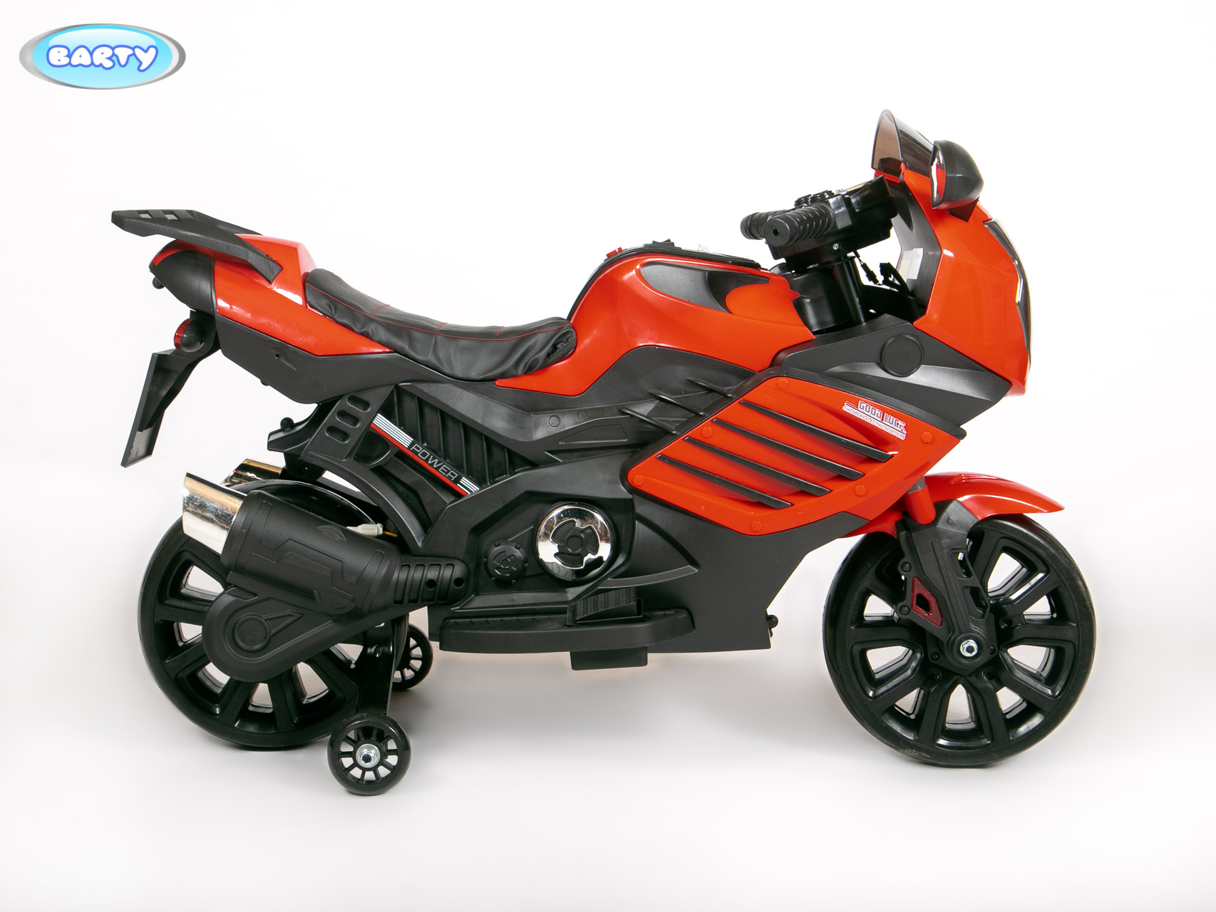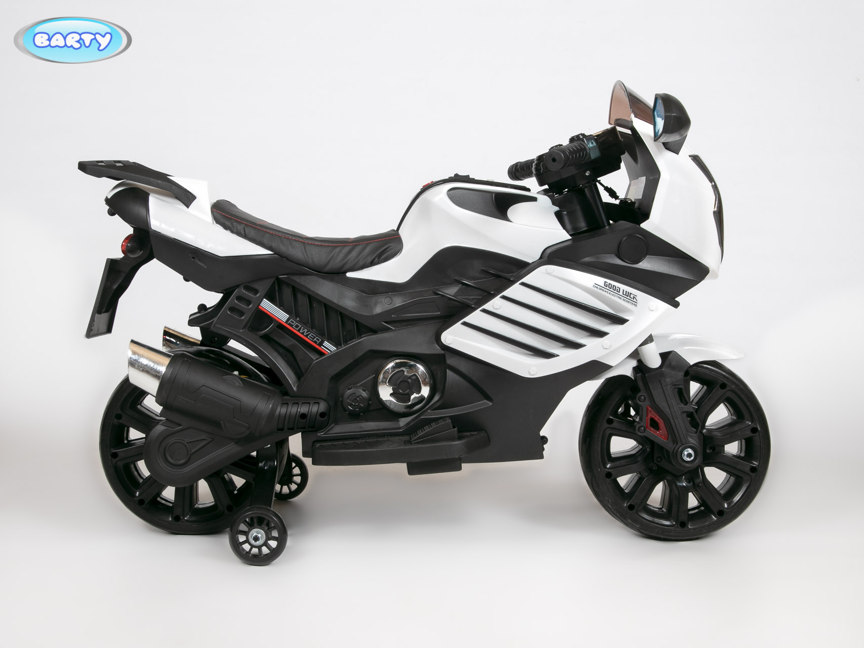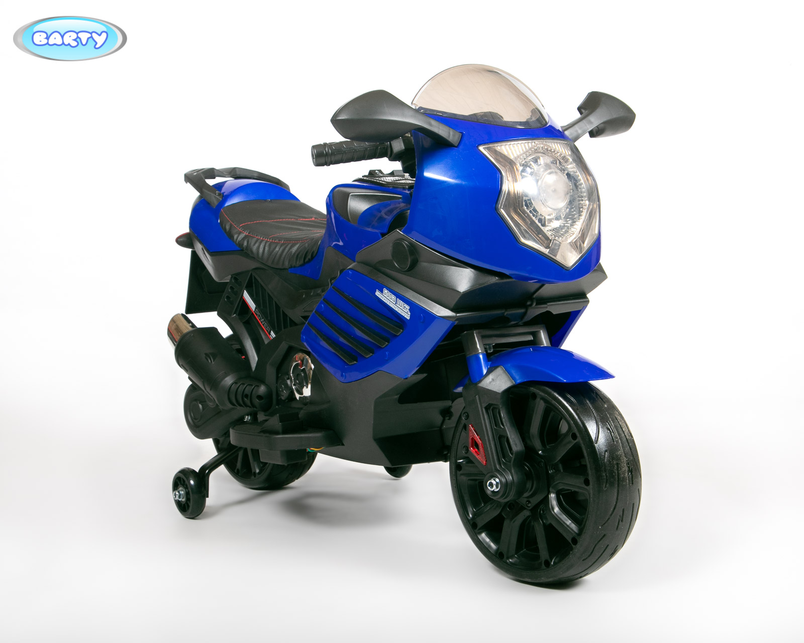 Электромотоцикл BARTY М005АА (Барти) - стильный, мощный мотоцикл для ребенка от 3 до 6 лет. Яркий дизайн, свет фар, звуковые элементы придают ребенку ощущение, что он управляет "взрослым" мотоциклом. Для начинающих гонщиков предусмотрены дополнительные колесики, которые помогут удержать равновесие. Простое управление и понятные кнопки помогут ребенку быстро разобраться, и научится ездить на такой машине. Максимальная скорость данной модели до 4 км в час, а заряда аккумулятора хватит до 120 минут беспрерывного катания. Небольшой вес модели поможет родителям без труда брать данный мотоцикл на прогулку.