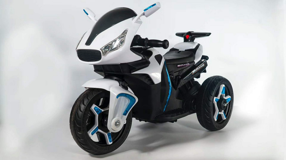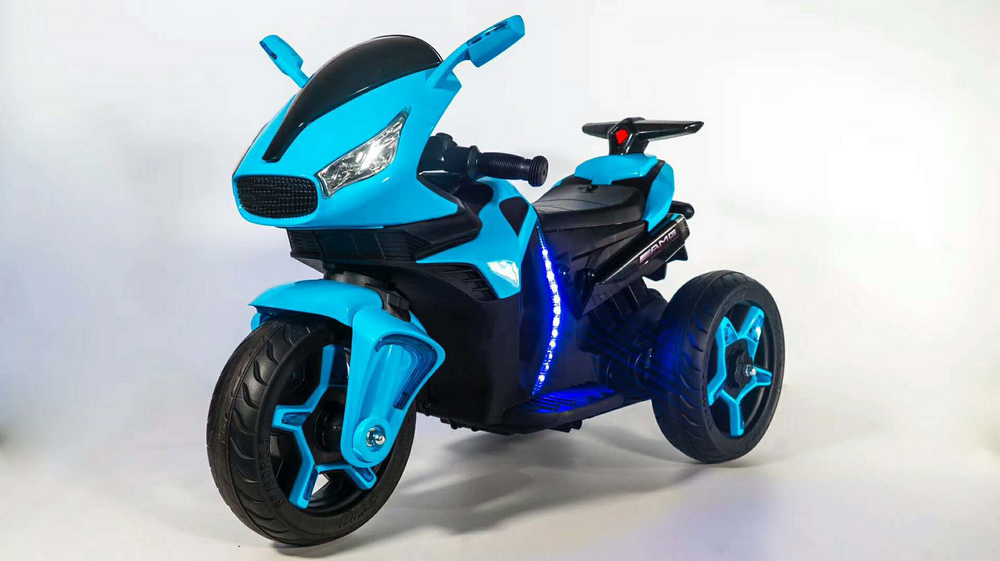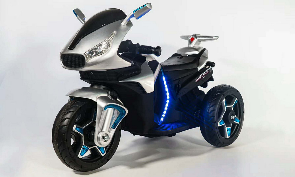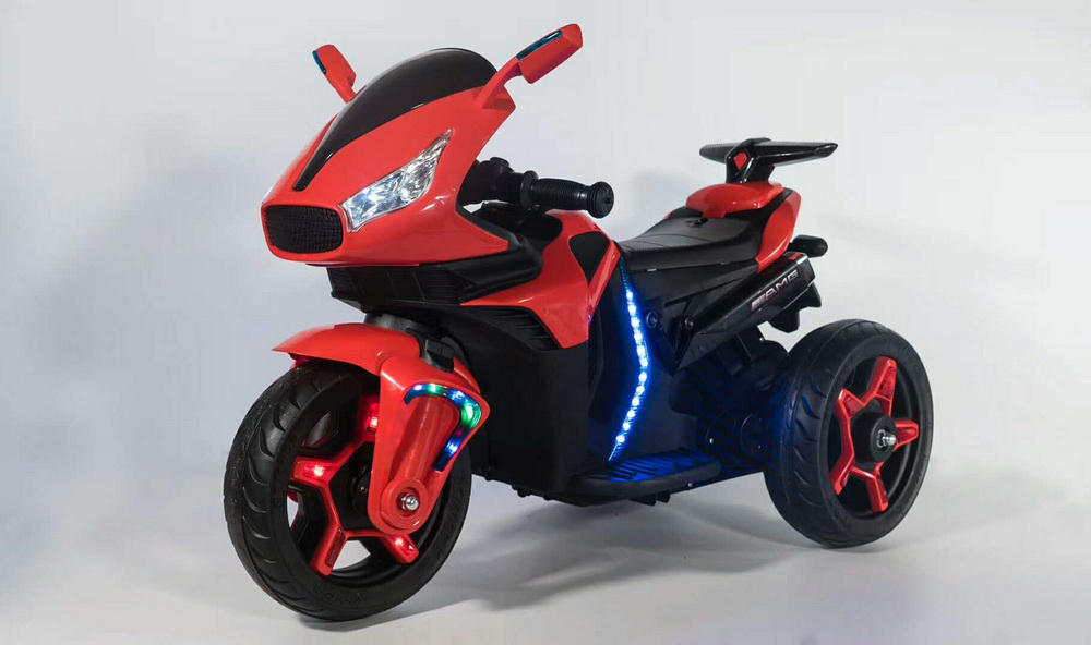 Мощный мотоцикл разгоняется до 4 км/час и имеет каучуковые колеса, которые сделают ход транспорта более мягким. Модель очень устойчивая и удобная в эксплуатации. Для дополнительного комфорта сидение выполнено из эко кожи. Для дополнительного эффекта в пути горят фары, и есть звуковые сигналы. Зажигание осуществляется с кнопки.