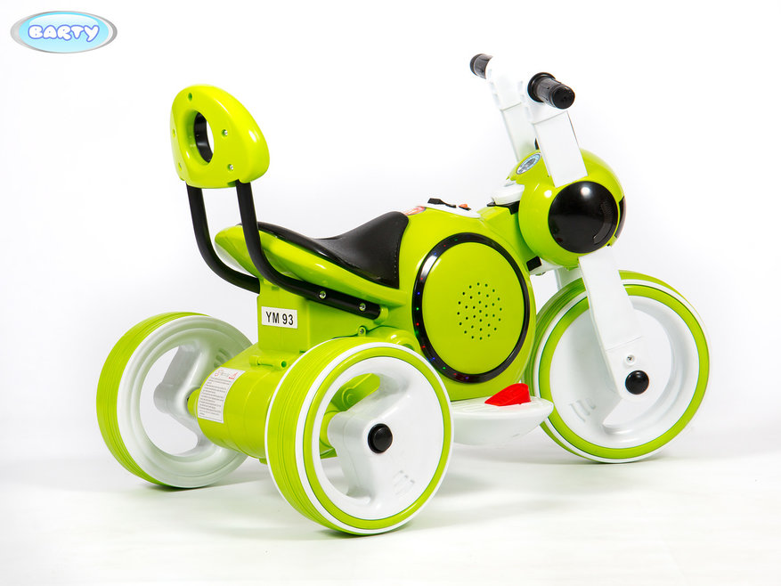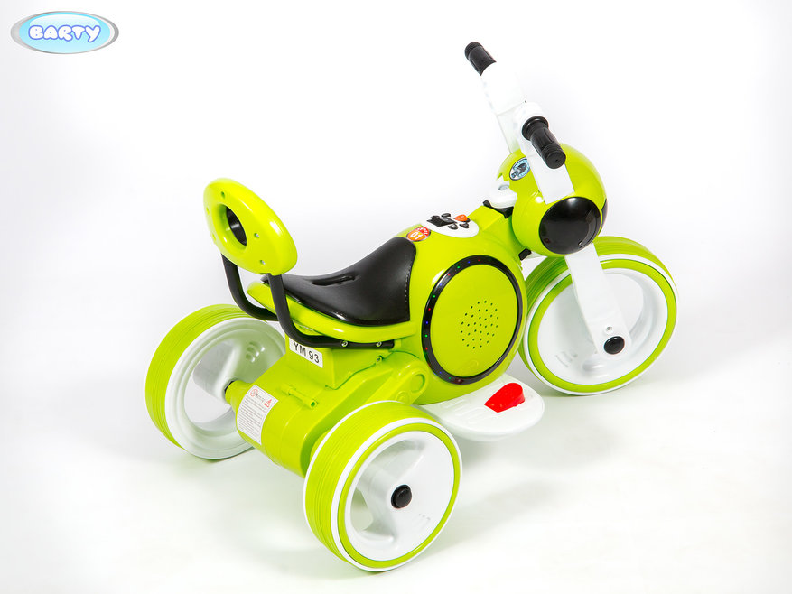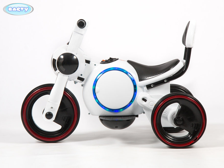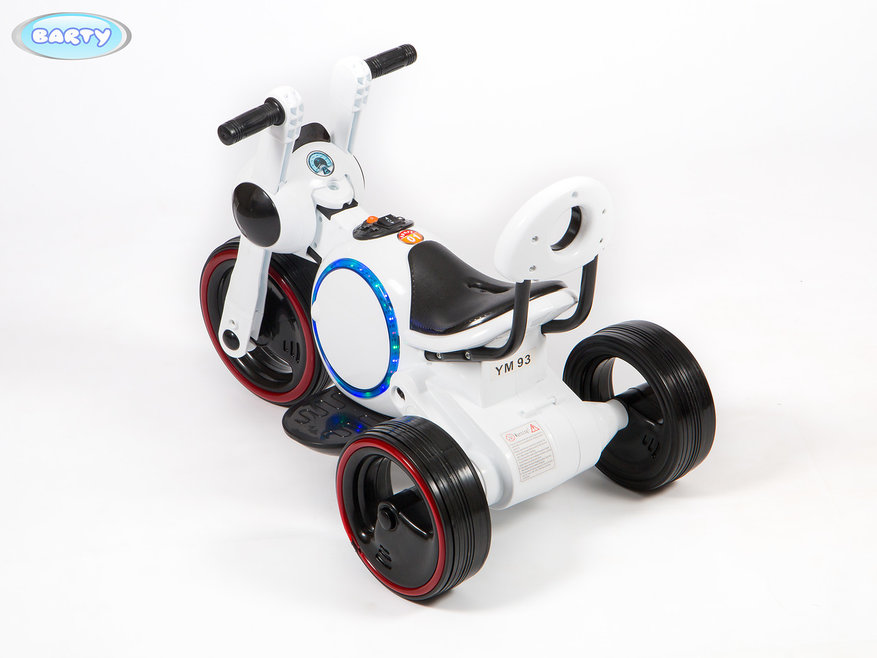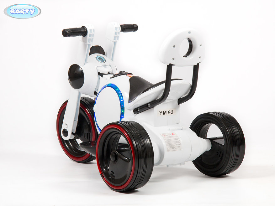 Электромотоцикл Barty Y-MAXI YM93 (барти ай макси) - очень стильный и интересный мотоцикл для ребенка от года. У модели невероятно яркий и футуристический дизайн. По всему корпусу расположены светодиодные лампы. У него небольшой вес и очень простое управление. Включается мотоцикл тоже очень просто. Нажимаете кнопку «назад или вперед» и плавно нажимаете на педаль.