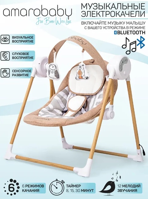 Электронные качели AmaroBaby WOODEN SWING (Амаробеби Вуден Свинг) - современный помощник для мамы с новорожденным ребенком. Это качественные качели с электрическим качанием из максимально натуральных материалов.