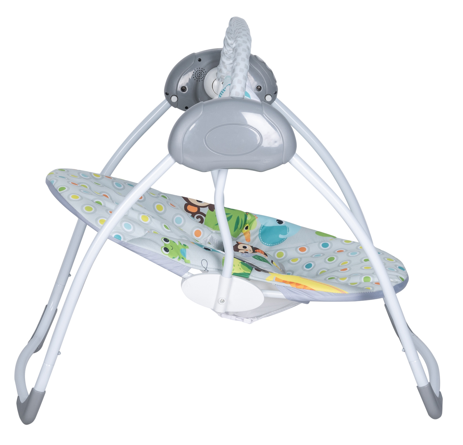 Многофункциональная панель включается с кнопки. Можно выбрать любую из 4 колыбельных мелодий и 2 звуков природы. Есть 3 скорости укачивания с возможностью установки таймера на 15,30 и 45 минут. Источник питания:батарейки АА 2 штуки 1.5V (в комплекте не идут),и адаптер от электрической сети. Качели удобны в хранении, в сложенном виде занимает мало места. С помощью кнопок расположенных по бокам ножки компактно сдвигаются, а само сидение складывается пополам.