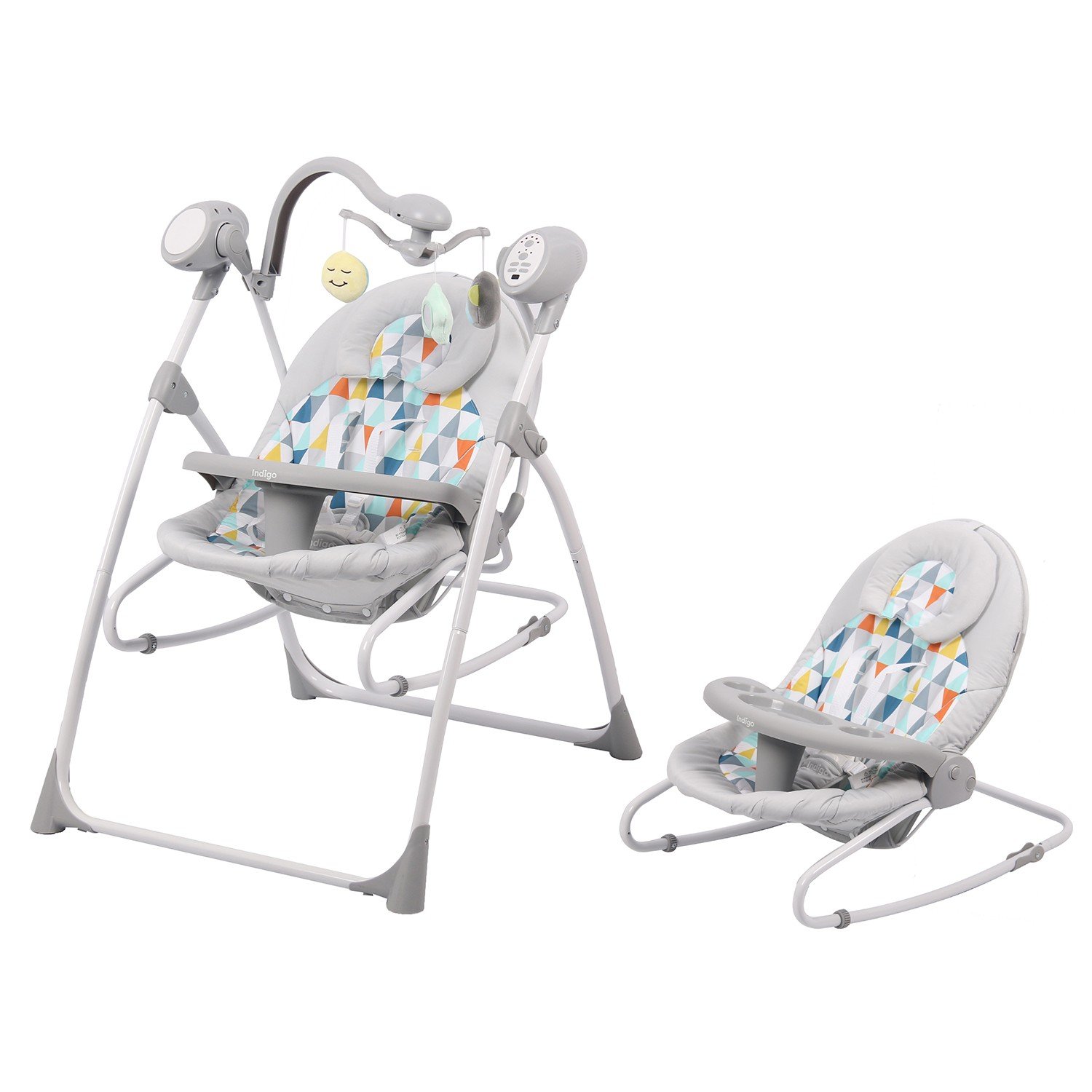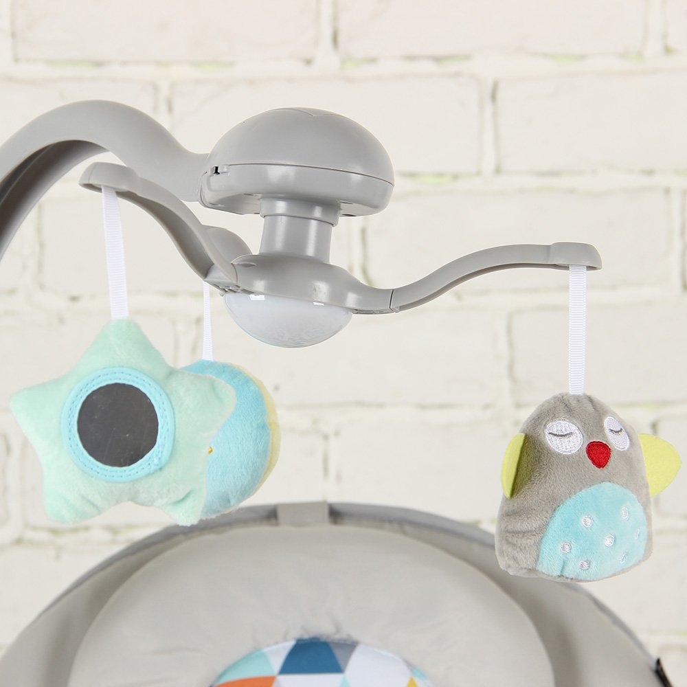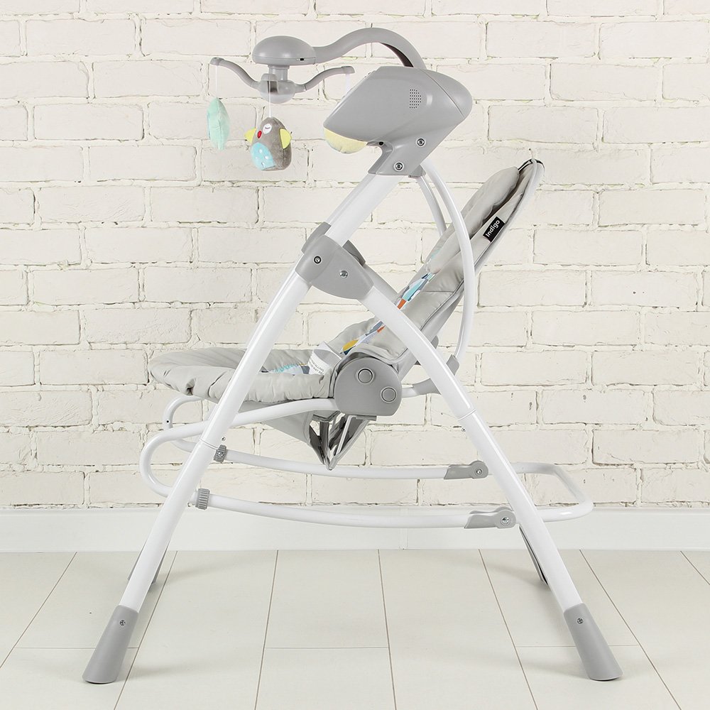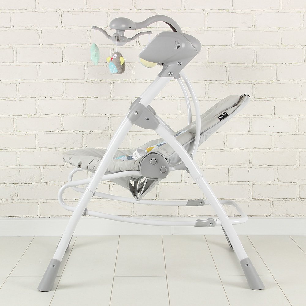 Электронные качели Indigo MISTY 2 в 1 (Индиго Мисти) - выполнены с учетом всех современных требований и ожиданий родителей. Они подходят для новорожденного малыша и могут использоваться непосредственно как электрокачели или трансформироваться в шезлонг-качалку. Качели управляются с панели или с помощью дистанционного пульта управления. Они могут работать от сети или от батареек. В Indigo MISTY предусмотрены различные скорости качания, таймер для автоматического выключения и регулировка спинки в зависимости от возраста ребенка. Для безопасности ребенка предусмотрены 5-ти точечные ремешки безопасности. Дополнительно для новорожденного предусмотрена мягкая подушечка, которая сделает пребывание в качелях более комфортным. Для развлечения ребенка предусмотрены звуки природы, мелодии, игровая дуга с игрушками и светом.