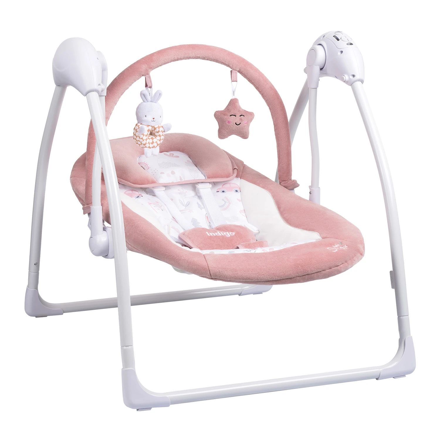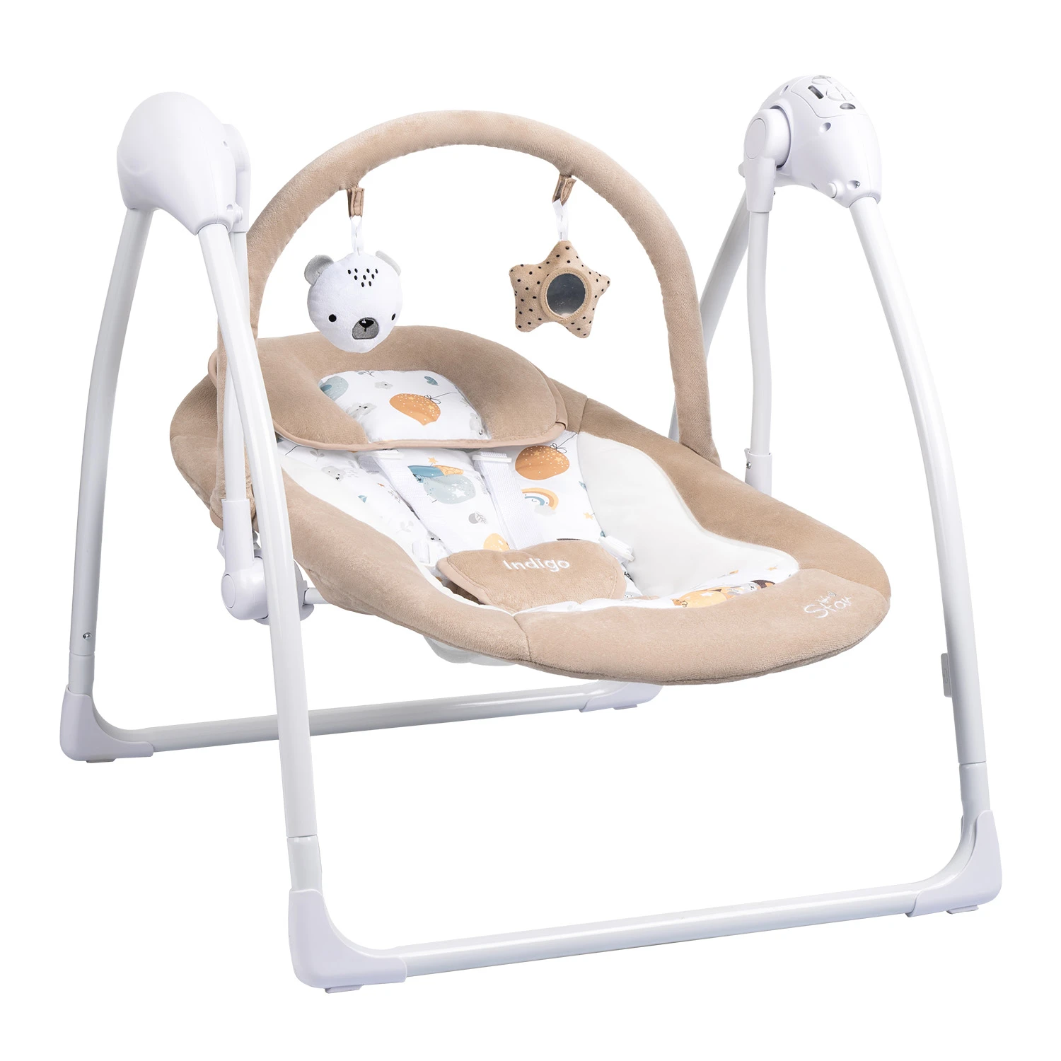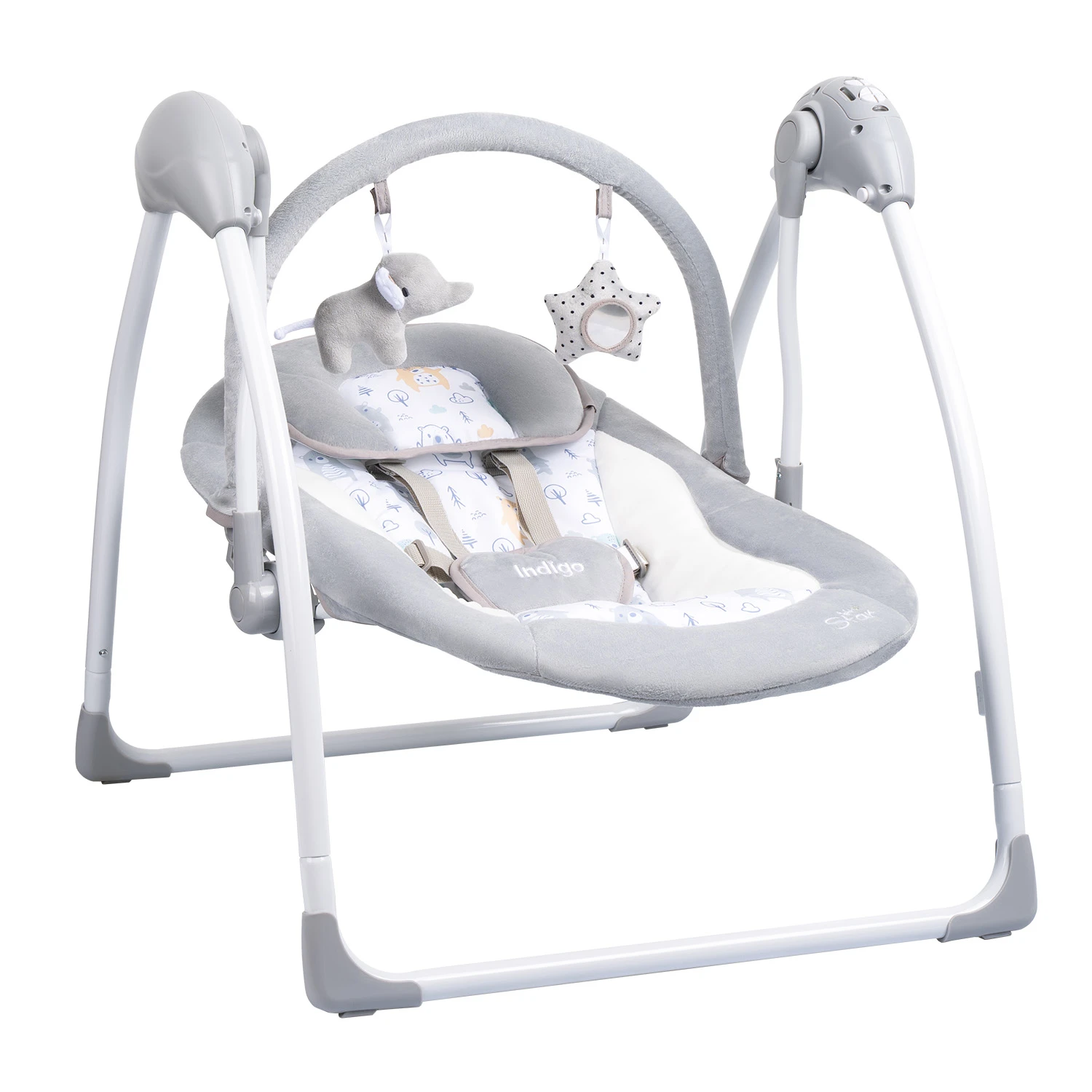 Электронные качели Indigo STAR light (индиго стар лайт) - надёжное и удобное решение для комфортного времяпрепровождения ребенка с рождения до 9кг. Большим преимуществом качелей является их функциональность: 5 скоростей качания, 15 встроенных мелодий, 5 звуков природы, таймер укачивания, возможность регулировки громкости и фиксации качания. STAR Light работает как от батареек, так и от USB, что делает их универсальными как для дома, так и для путешествий.