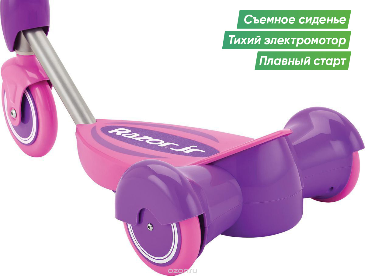 Электросамокат для самых маленьких Razor Lil' E (рейзер Лил е) - электрический самокат для детей от 2-3 лет. Это уникальный транспорт был создан, что бы ребенок уже в 2 года смог насладится быстрым, но безопасным катанием дома и на улице. Для тех, кто ещё боится кататься или пока плохо держит равновесие предусмотрено специальное съемное сидение. Самокат запускается плавно с помощью нажатия на кнопку на руле. Если ребенок отпустит кнопку газа, самокат начнёт тормозить до полной остановки. Для безопасности юного гонщика и дополнительной устойчивости транспорт оснащен тремя колесами. Удобная платформа для ног. Яркие расцветки. Качественная и надежная сборка.