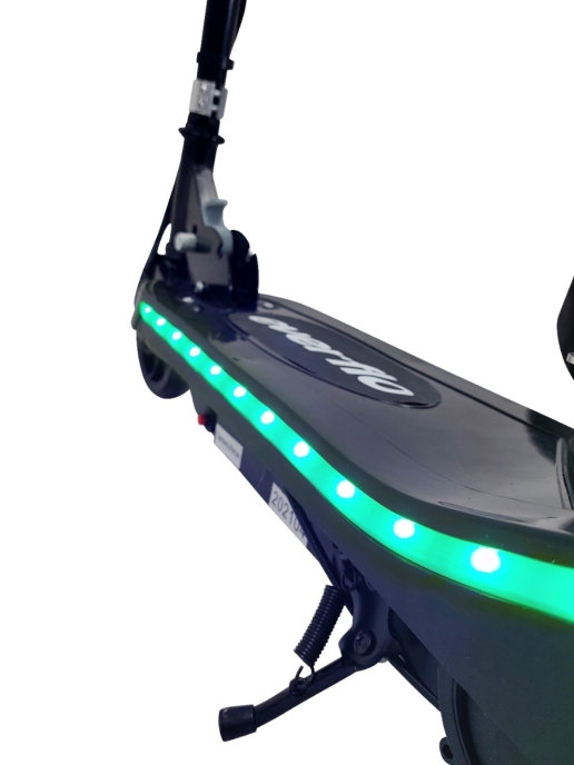 - Светодиодная подсветка по периметру не только поднимет настроения, но и сделает ребёнка заметным для пешеходов и других участников движения!