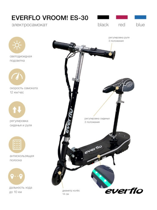 Купить электросамокат Everflo WOW! ES-30 (Эверфло ВАУ! ES-30) с подсветкой в нашем магазине очень просто — Вам достаточно оформить заказ онлайн на сайте или по телефону +8(925)266-83-06. Мы доставим товар в самое короткое время по Москве и Подмосковью (бесплатно до 10 км за МКАД). Так же отправляем в любой город России, в Армению, в Киргизию, в Крым, в республику Беларусь с помощью транспортной компании.