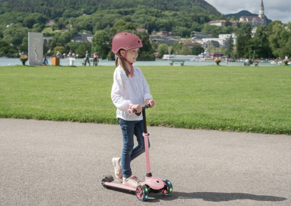 - регулируемый по высоте, сверхширокий алюминиевый Т-образный руль (71/76/81 см от земли) с удобными двухцветными ручками из термопластичной резины и анодированной цветной стойкой; для детей в возрасте 6–10 лет.