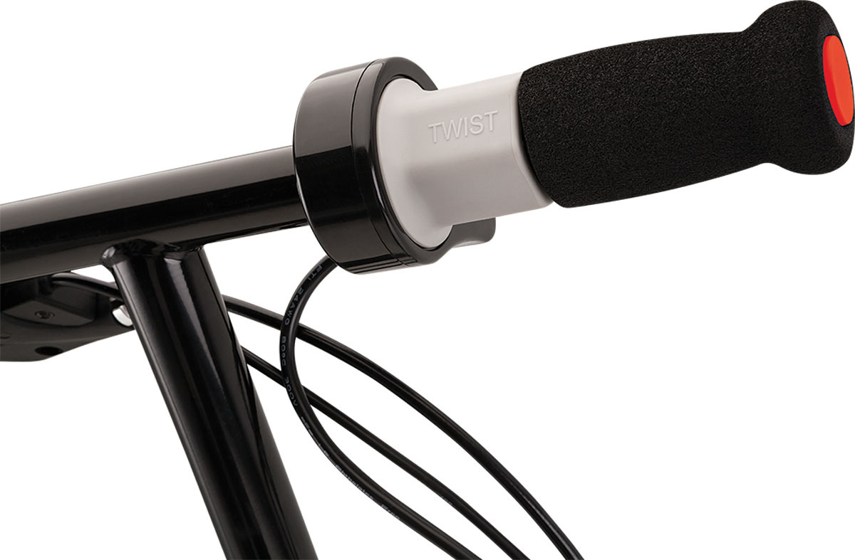 Для поезки нужно просто оттолкнуться ногой и поехать. Все остальное сделает бесшумный, но мощный мотор. Для торможения предусмотрен ручной тормоз, который позволит контролировать поездку, и при необходимости плавно сбавлять ход или быстро остановиться.