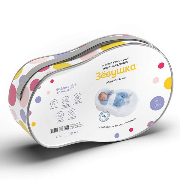Эргономический матрасик кокон Зевушка – удобный анатомический матрасик для детей с рождения до 6 месяцев. Впервые месяцы после рождения ребенок адаптируется к новой для него среде, для него все ново и необычно, поэтому в небольшой уютной колыбельке малыш чувствует себя более комфортно и защищено. Доказано, что даже колики и срыгивания у малышей, которые лежат в такой колыбельке меньше или нет совсем. Так же в такой "колыбельке" родителям будет удобно общаться с ребенком, вы можете взять его с собой в родительскую кровать, удобно разместить на кухне или рядом на диванчике. Ребенок будет надежно зафиксирован в коконе и не скатится, не перевернется и не упадет, как если бы он просто лежал на диване.