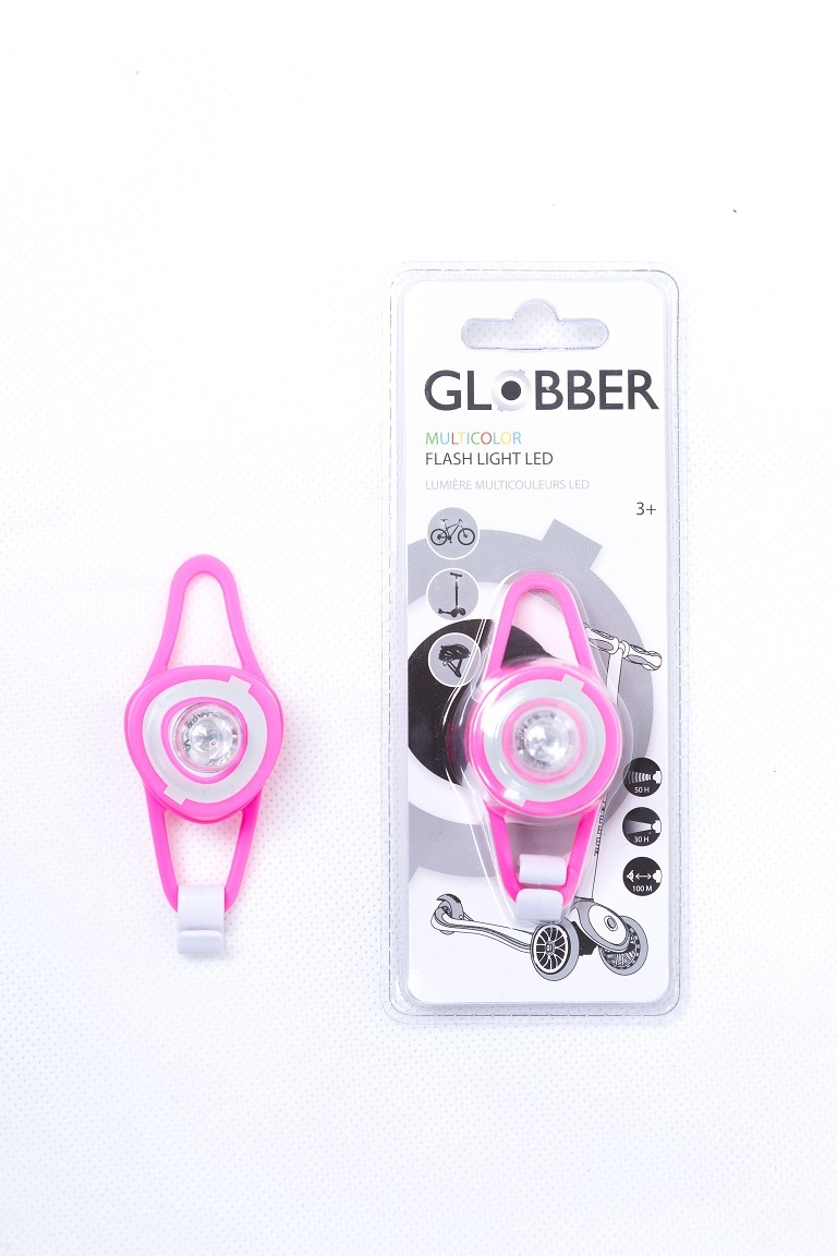 Светодиодный фонарик Globber FLASH LIGHT LED (глоббер флеш) - оригинальный фонарик на детский самокат, беговел, велосипед. Очень легко крепится практически на любой транспорт. Фонарик очень яркий и позволит обезопасить катание ребенка в темное время суток. В фонарике предусмотрено 2 режима: свет и мигание.