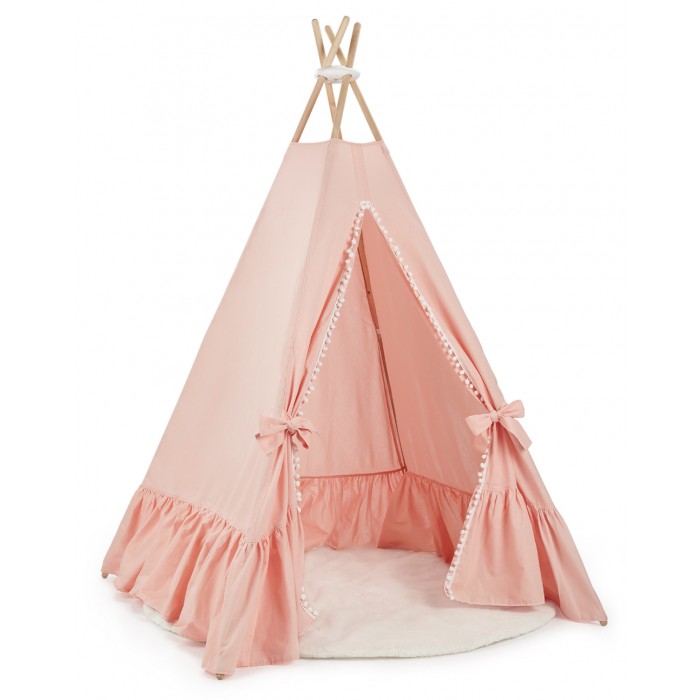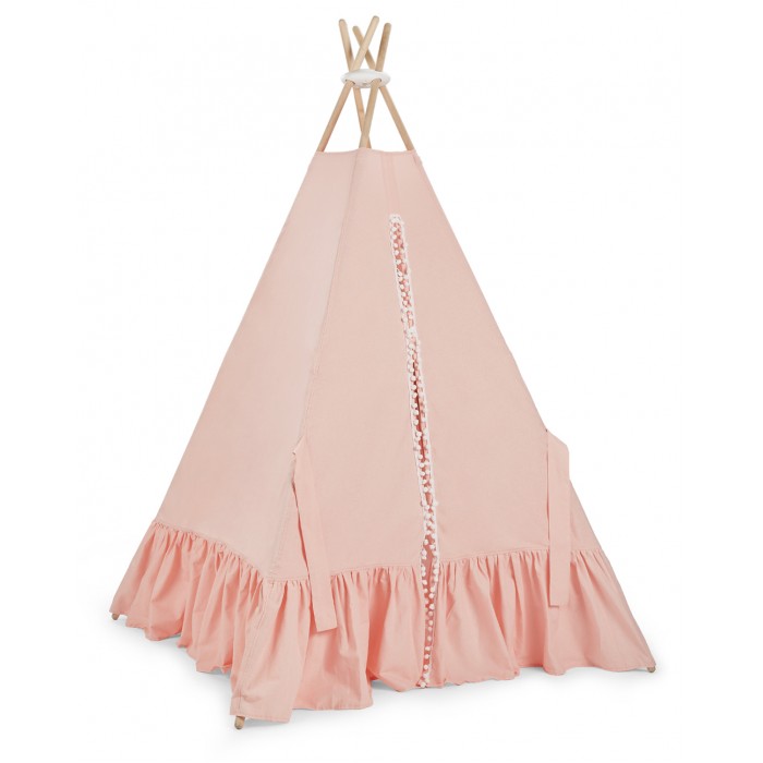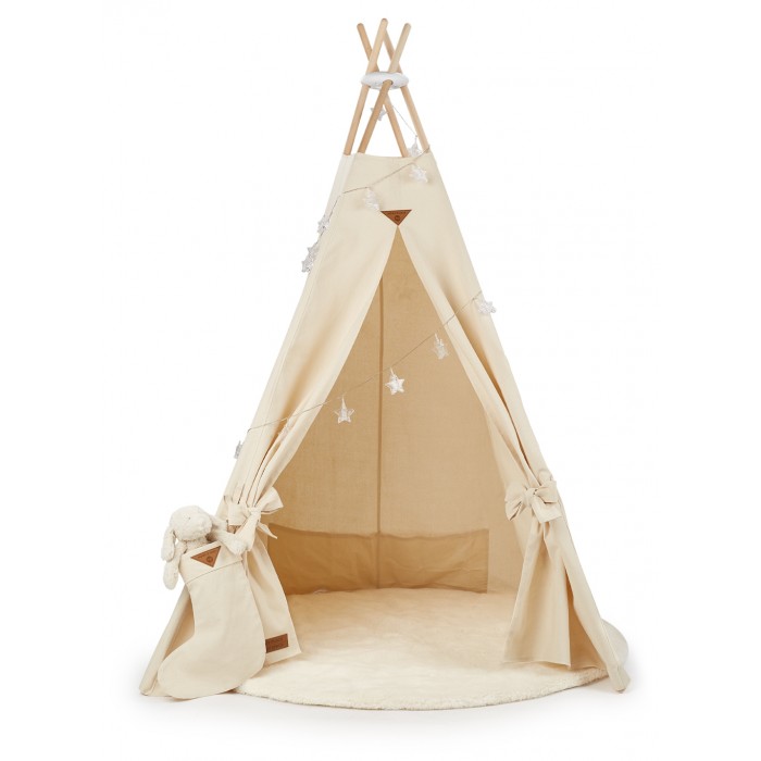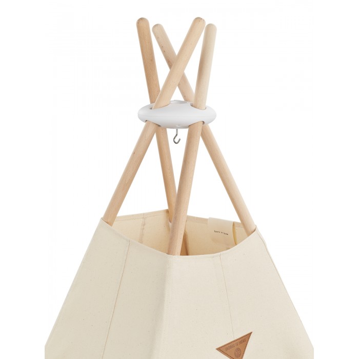Стойки каркаса из натурального дерева собираются в устойчивую и легкую конструкцию. Когда ребенок подрастет, основание вигвама трансформируется в стильную вешалку для одежды.