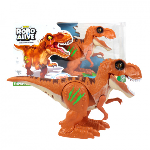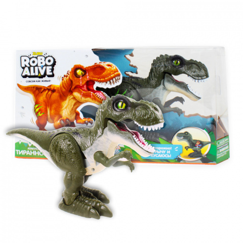 Животные Robo Alive кого угодно заставят потерять дар речи! Эта серия игрушек идеально подойдет для любителей экзотических животных! Робо-динозавры реалистично выглядят, двигаются, клацают челюстями и рычат. Тираннозавр настолько суровый, что получил шрам в бою, который светится в темноте! Почувствуй себя хозяином необычного питомца!