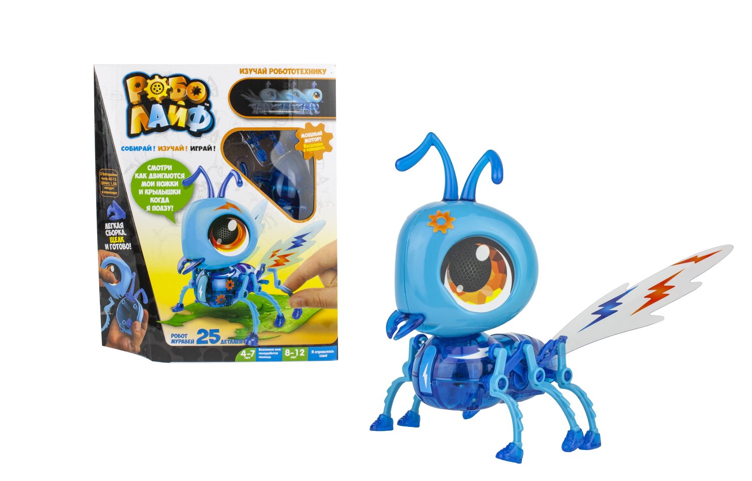 Обучение посредством игры. РобоЛайф выводит робототехнику на новый уровень позволяя собрать из деталей твоего собственного функционального питомца. С помощью игрушек РобоЛайф изучение дисциплин S.T.E.M. (Естественные науки , Технология, Конструирование, Математика) становится понятным и забавным, помогая понять окружающий мир и взаимодействовать с ним! Собери своего питомца, изучи как работает его механизм, укрась его на свой вкус! А еще, ты можешь соединить вместе нескольких питомцев, и сделать гусеницу! Внутри коробки тебя ждут: 25 деталей для сборки, 2 крылышка, набор наклеек, паспорт питомца и обучающее руководство. Работает от 3-х батареек (входят в комплект).