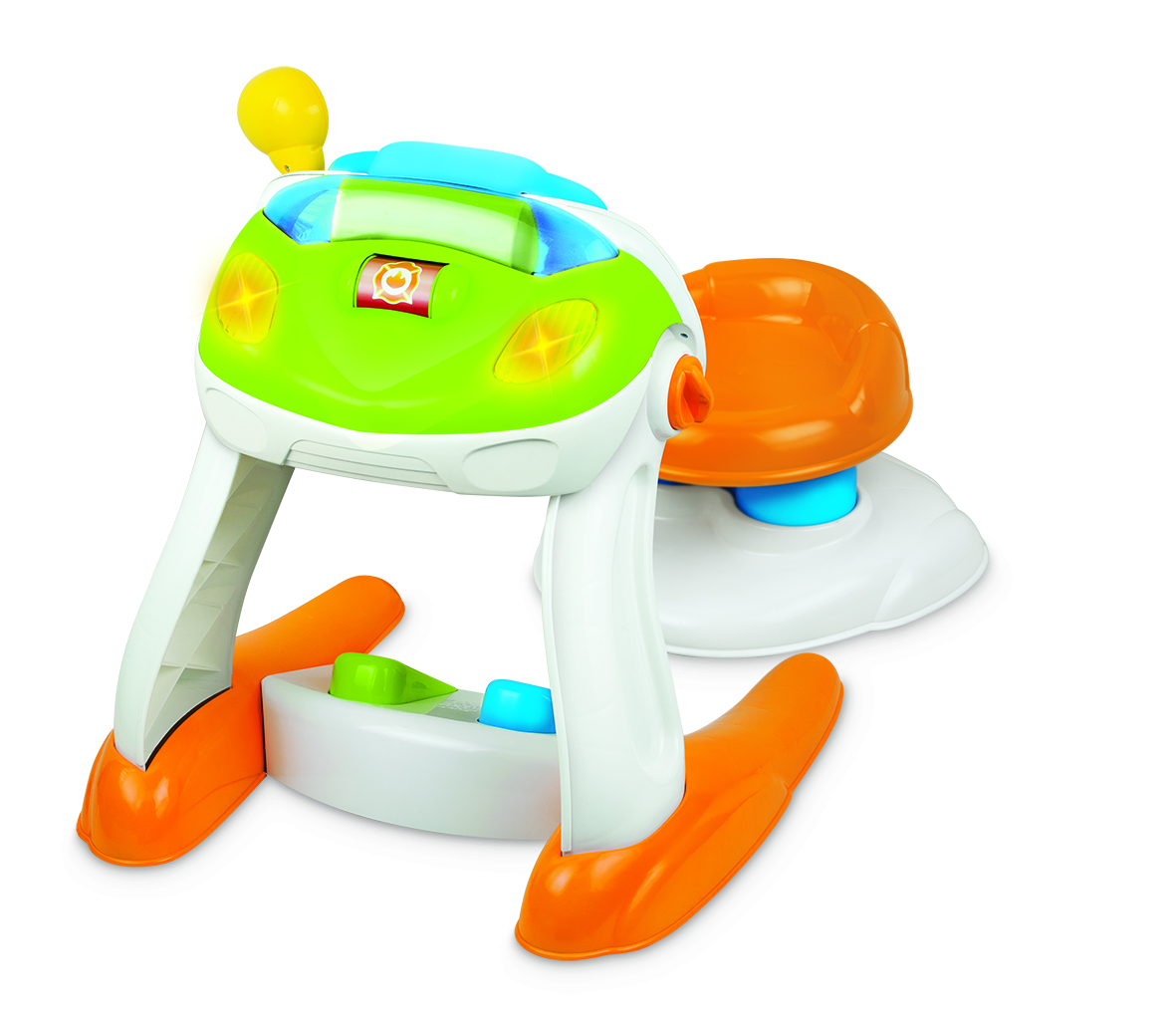 на панели имеется всё, чтобы малыш почувствовал себя настоящим водителем: руль, коробка передач, педали газа и тормоза и экран с машинкой - лобовое стекло.