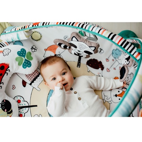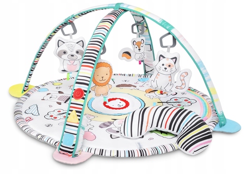 Развивающий коврик Lionelo Paula (лионело паула) - детский коврик для детей с рождения с интерактивными дугами, световым и музыкальным сопровождением. Такой коврик познакомит малыша с формами и цветами, что обеспечит развитие его координации движений и пространственных способностей. Применение интенсивных, контрастных цветов стимулирует зрение маленького первооткрывателя, а, следовательно, развивает его воображение и умение концентрироваться. Нижняя часть коврика сделана из специального толстого материала, что дает отличную теплоизоляцию от пола. Мягкий наполнитель обеспечивает комфорт малышу.