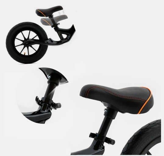 Карбоновая рама невероятно прочная и надежная. Такой беговел выдержит любые прогулки с ребенком. Высота руля и высота сидения регулируется, позволяя настроить транспорт под рост ребенка. Эргономичное сидение выполнено их мягкой эко кожи. Прорезиненный нескользящий руль гарантирует уверенный контроль управления на дороге.