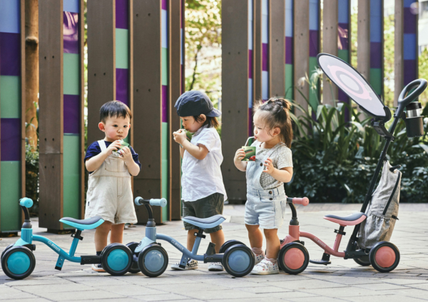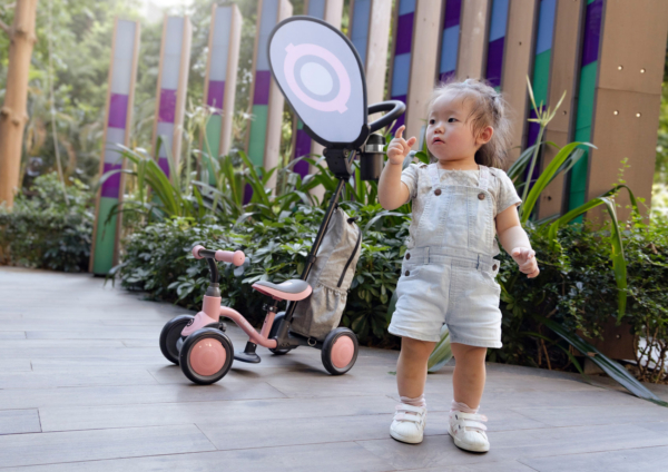 Безопасный беговел для детей от 1 года с задней вращающейся системой, которая синхронизирует движение задних колес с движением передних колес для безопасного и интуитивно понятного катания.