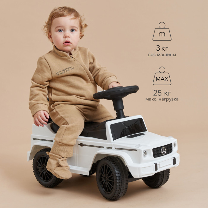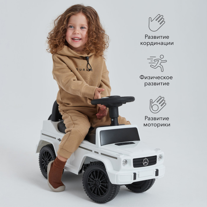 Благодаря Happy Baby у малыша будет свой собственный крутой Mercedes Benz - машина-каталка, которая способствует физическому и эмоциональному развитию ребенка, развитию координации движений, моторики и пространственного восприятия.