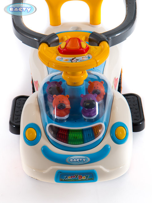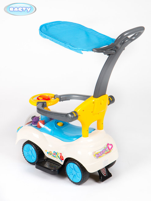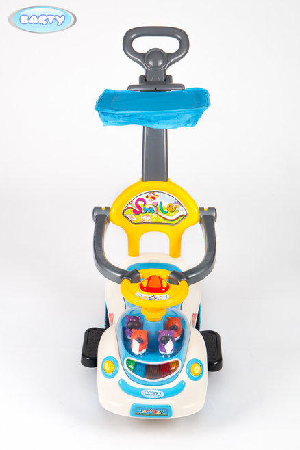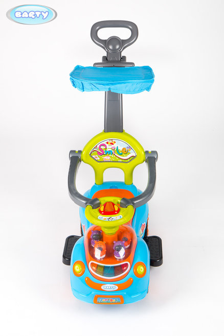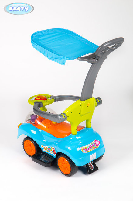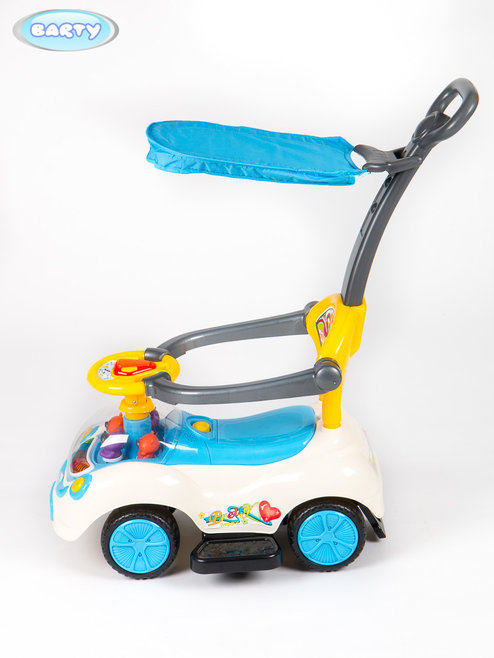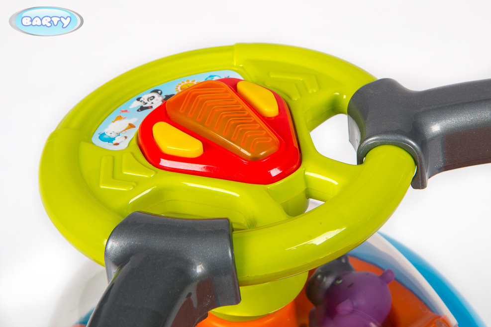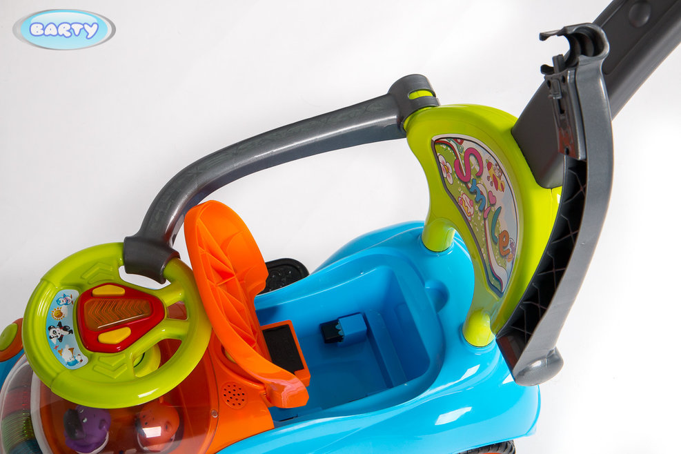 Каталка толокар BARTY Q07-4 (барти) - развивающая игрушка - каталка с красочной панелью и музыкальным рулем. Машинка позволит ребенку с годика самостоятельно передвигаться по квартире. С помощью съемной ручки родители могут катать малыша или помочь с освоением нового транспорта. Машинка устойчивая, не переворачивается и не опрокидывается, очень яркая, красочная и интересная.