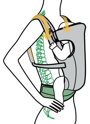 Анатомическая форма лямок и оптимальное распределение нагрузки на плечи родителя.