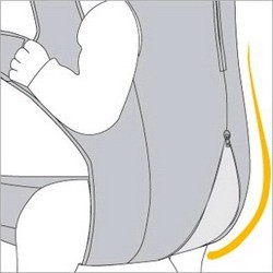 - Рекомендованная позиция с разведенными ножками (так называемая «лягушка») может быть индивидуально подобрана в соответствии с параметрами ребенка, оказывая положительный терапевтический эффект при профилактике дисплазии суставов. Для детей постарше разрез в сидении можно отрегулировать для большей свободы движения и комфорта.
