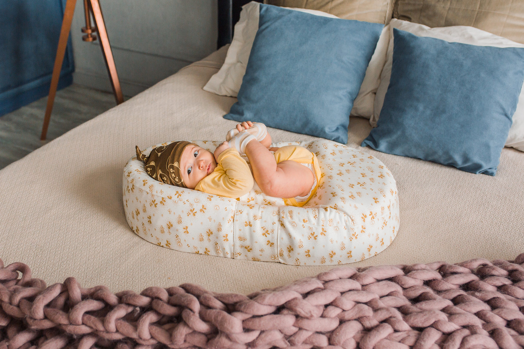 - Контакт плеч и рук ребенка с коконом ограничивает рефлекс Moro (вздрагивание), предотвращая ненужные нарушения во время циклов естественного сна вашего ребенка.