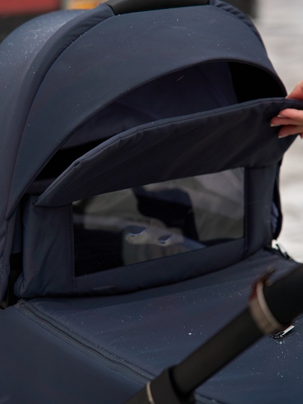 - Накидка на люльку оснащена твердым окошком, которое не мнется и обеспечивает надежную ветрозащиту, удобно крепясь при помощи магнитов. Это особенно важно при сильном ветре, чтобы защитить малыша.