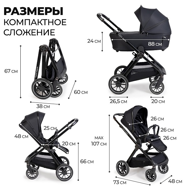 Кроме того, коляска оснащена высококачественным текстилем, который не только приятен на ощупь, но и долговечен. Прочная рама с поперечным усилителем обеспечивает надежность и стабильность конструкции, а прорезиненные колеса с хорошим протектором гарантируют плавный ход на любых поверхностях.