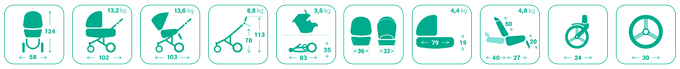 - Обивка коляски: водоотталкивающая, съемная, с УФ-защитой 50+.