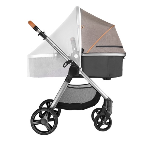 В комплект входит стильная и вместительная родительская сумка с отделениями, матрасик, универсальные адаптеры, противомоскитная сетка.