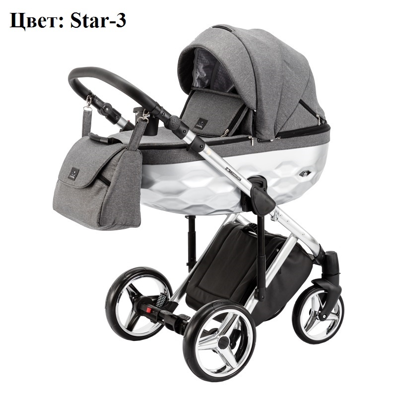 Наш онлайн магазин представляет новинку 2020 года, которая отличается высоким качеством изготовления и оригинальным дизайном: люлька и колесные диски покрашены краской металлик а в отделке используется эксклюзивная коллекция элегантных тканей. На этой странице можно выбрать коляску Adamex Chantal Star Collection 2 в 1 премиум серии Special Edition без автопереноски в комплекте. Автокресло для младенцев поставляется по отдельному заказу. В стандартную комплектацию данной модели включены багажная корзина, сумка для мамы, дождевая накидка, москитная сетка, теплые рукавички и держатель бутылочки.