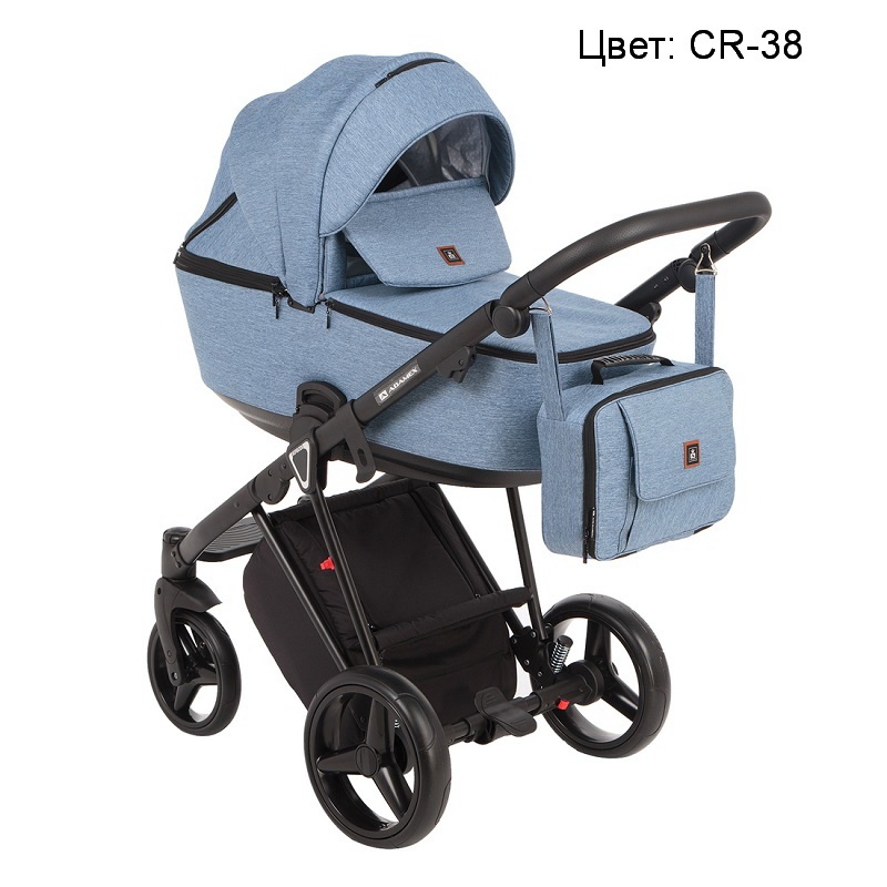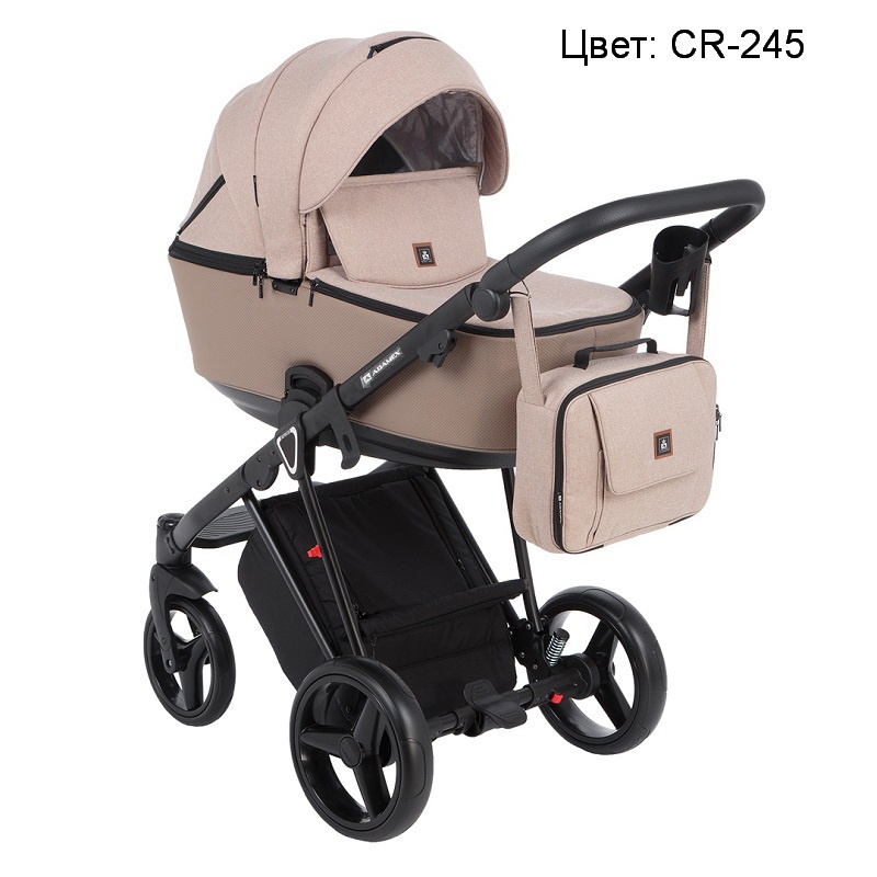 Дизайн этой коляски Адамекс выполнен из высочайшего качества тканей. В корпусе люльки на дне находится регулируемое вентиляционное отверстие. В чехле есть окошко, благодаря которому можно наблюдать за ребенком. Коляска предназначена для детей возрастом от 0 месяцев до 3 лет.